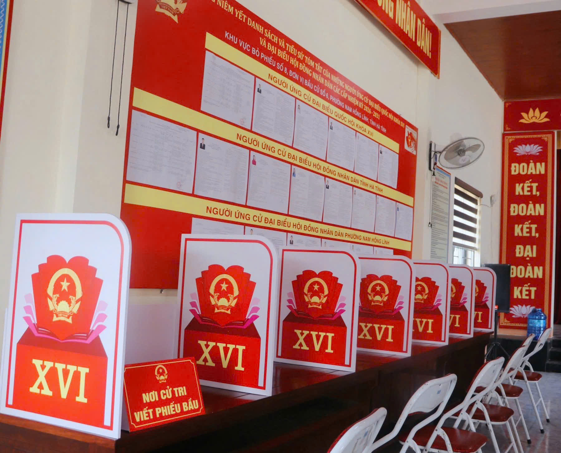 Theo đó, tại Phường Bắc Hồng Lĩnh có 09 khu vực bỏ phiếu, tổng số cử tri đến thời điểm này là 16.169 cử tri; Phường Nam Hồng Lĩnh có 8 khu vực bỏ phiếu, tổng số cử tri là 12.924 cử tri; Xã Trường Lưu có 15 khu vực bỏ phiếu, tổng số cử tri 16.333 cử tri; Xã Đức Thịnh có 11 khu vực bỏ phiếu, tổng số cử tri là 28.880 cử tri.