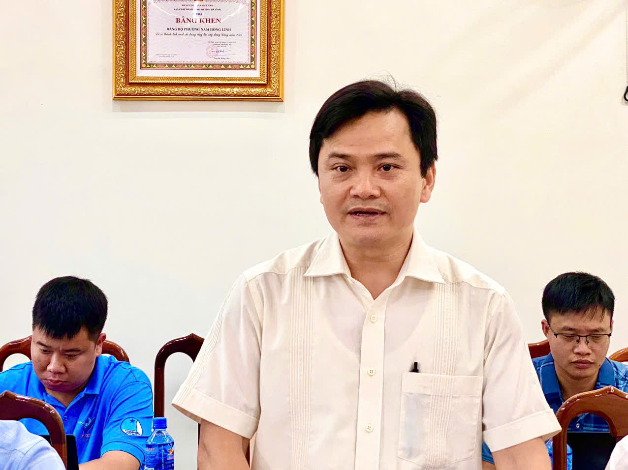 Tham dự có đồng chí Hoàng Bá Khang, Phó Bí thư Thường trực Đảng ủy; Đồng chí Tôn Quang Ngọc, Phó Bí thư Đảng ủy, Chủ tịch UBND phường; các đồng chí Ủy viên Ban Chấp hành Đảng bộ phường.