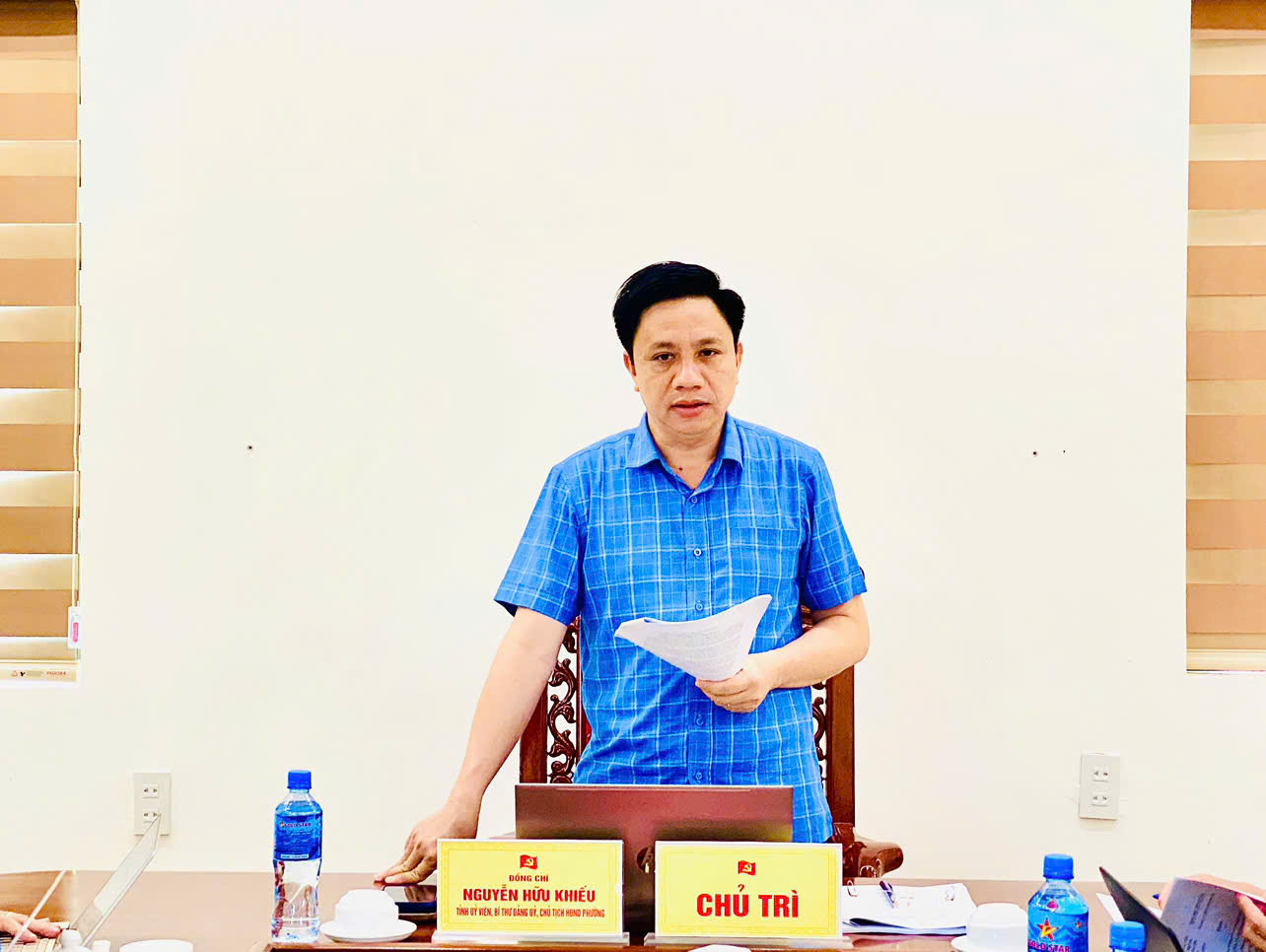 Đồng chí Nguyễn Hữu Khiếu, Ủy viên BCH Đảng bộ tỉnh, Bí thư Đảng ủy, Chủ tịch HĐND phường chủ trì hội nghị
