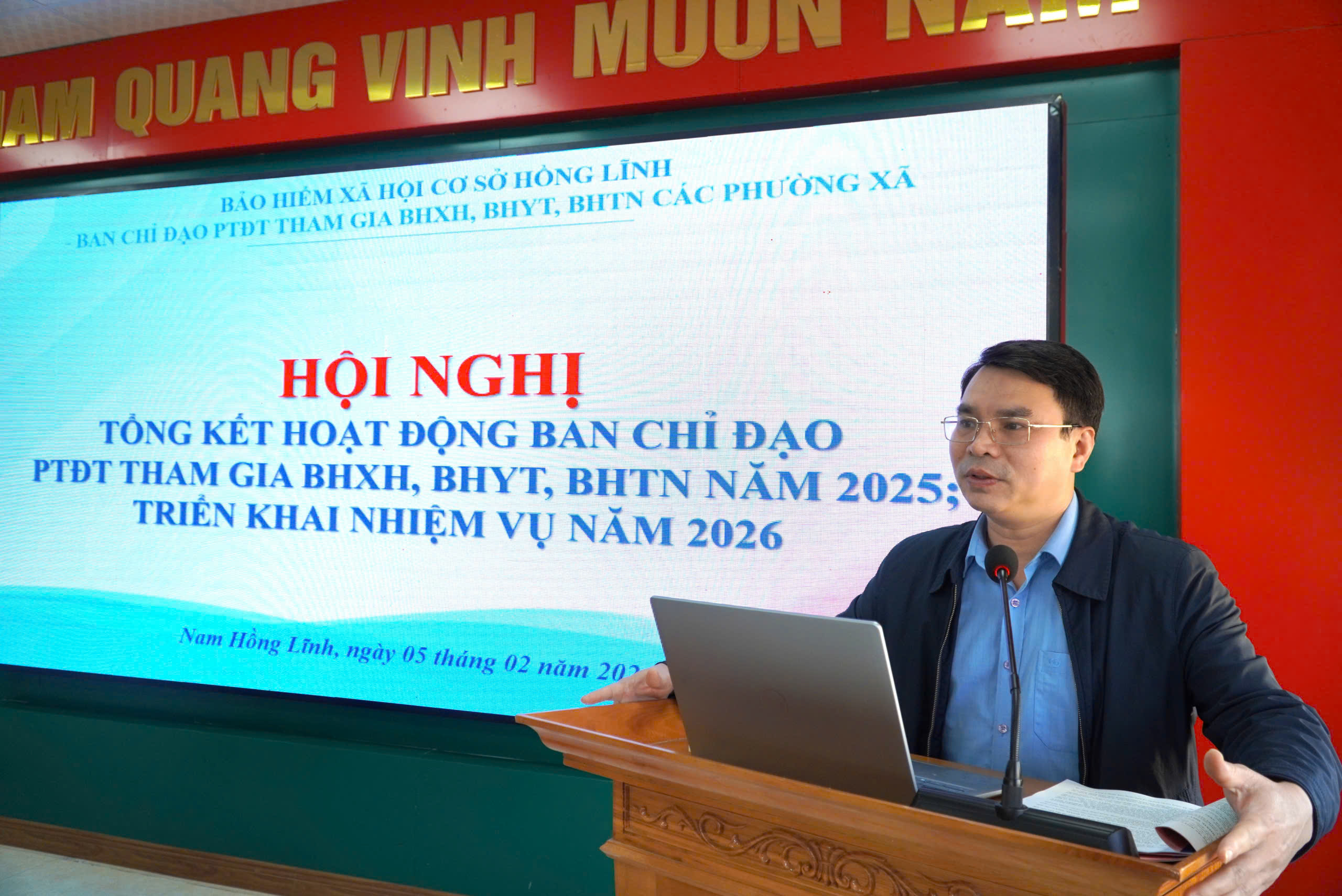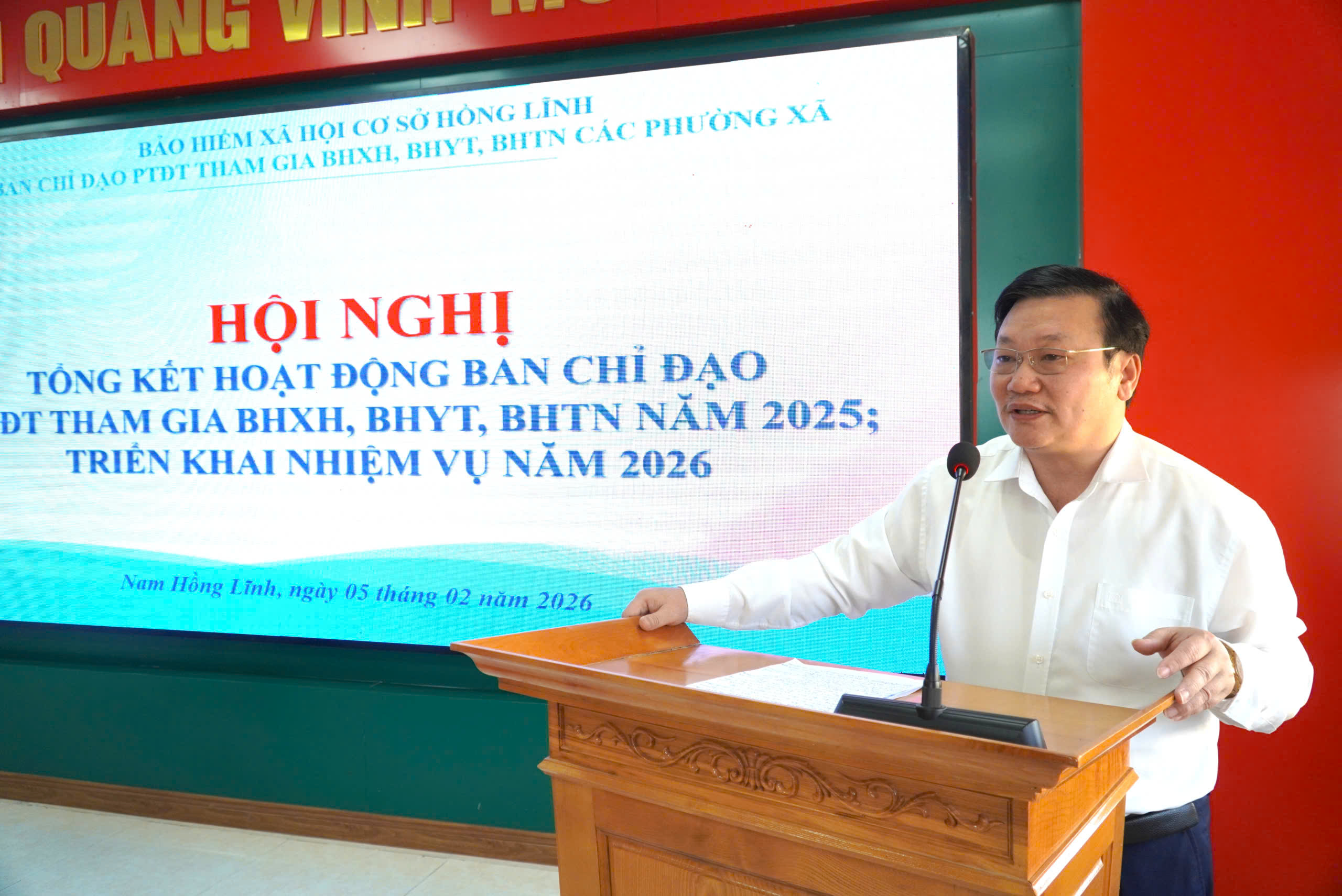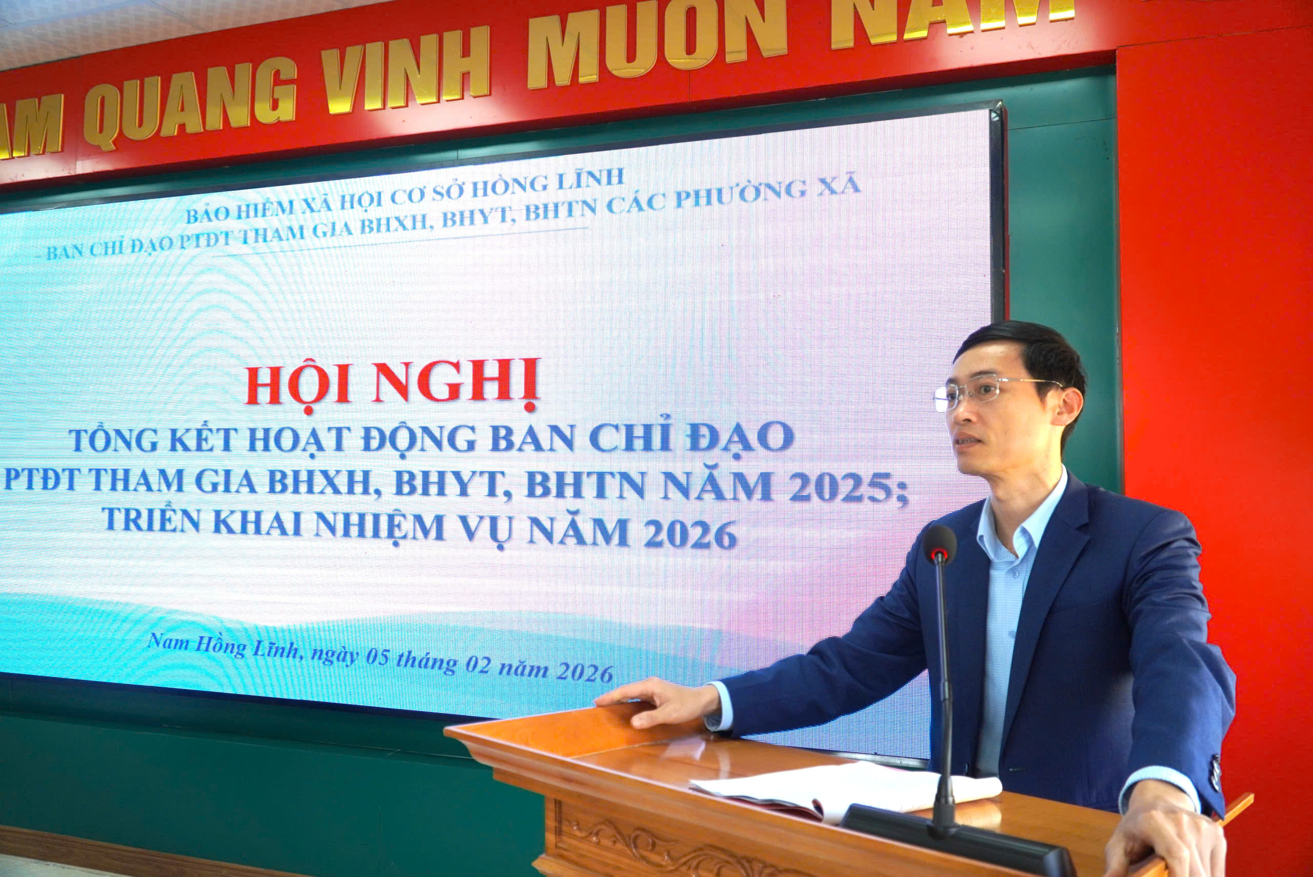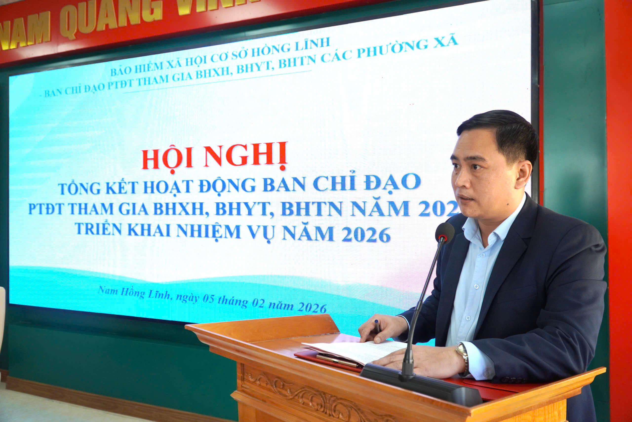 Kết luận hội nghị, đồng chí Hồ Văn Phong - Giám đốc BHXH cơ sở Hồng Lĩnh nhấn mạnh vai trò quan trọng của BHXH, BHYT đối với an sinh xã hội; đồng thời đề nghị các phường, xã tăng cường chỉ đạo tại cơ sở; trích chuyển nguồn kinh phí ngân sách nhà nước đóng BHYT cho các nhóm đối tượng kịp thời; tập trung rà soát đối tượng tiềm năng, tích cực phối hợp với BHXH cơ sở và các Tổ chức dịch vụ thu BHXH, BHYT trong việc tổ chức các hoạt động tuyên truyền nhằm nâng cao hiệu quả phát triển đối tượng trong năm 2026.