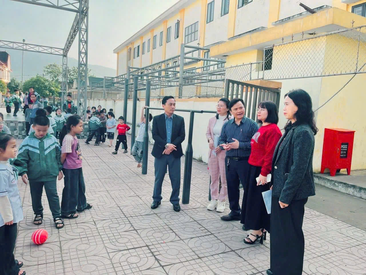 Tại các buổi làm việc, Đoàn đã trực tiếp khảo sát thực tế cơ sở vật chất trường học, tập trung vào các hạng mục phục vụ công tác kiểm định chất lượng giáo dục theo nội dung thông báo khảo sát, như: phòng học, phòng chức năng, khu hiệu bộ, nhà vệ sinh, khu vui chơi, sân bãi, hệ thống cấp thoát nước, điện chiếu sáng và các công trình phụ trợ.