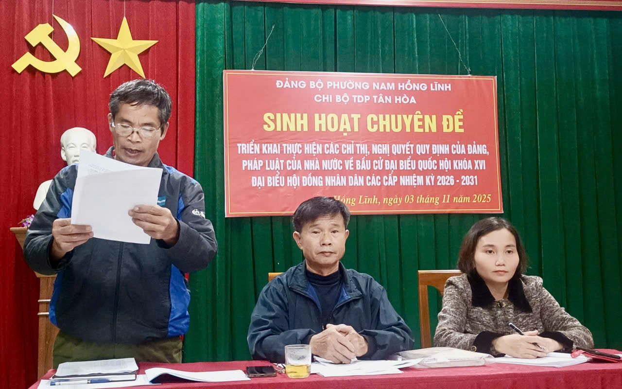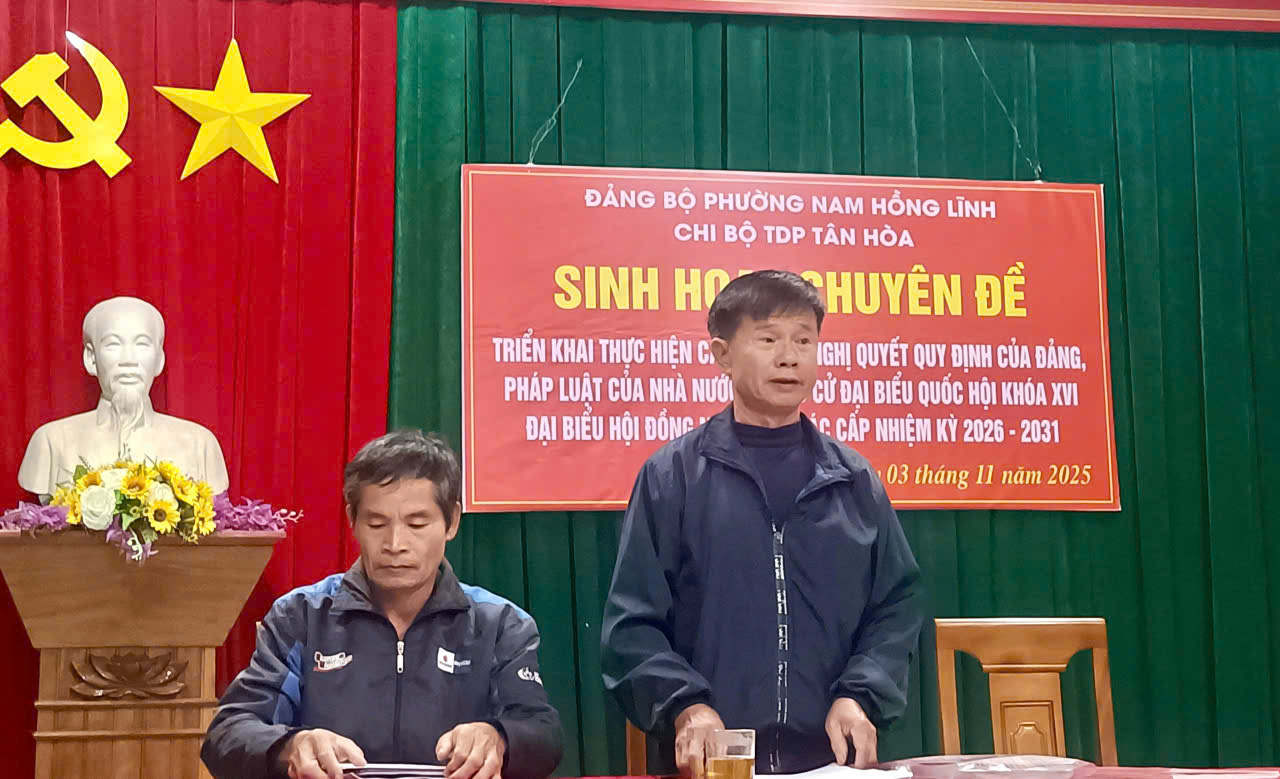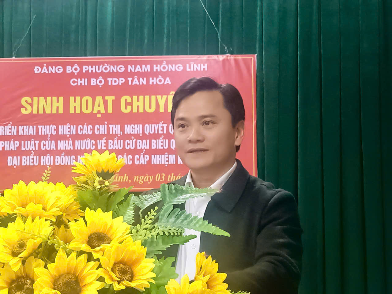 Phát biểu chỉ đạo, đồng chí Nguyễn Trí Anh đánh giá cao sự chủ động, nghiêm túc của Chi bộ Tân Hòa trong tổ chức sinh hoạt chuyên đề, nội dung bám sát định hướng của Đảng ủy phường, gắn lý luận với thực tiễn địa phương. Đồng chí đề nghị chi bộ tiếp tục phát huy tinh thần đoàn kết, nêu cao vai trò tiên phong, gương mẫu của từng đảng viên trong công tác tuyên truyền, góp phần cùng toàn phường tổ chức thành công cuộc bầu cử đại biểu Quốc hội và HĐND các cấp nhiệm kỳ 2026–2031.