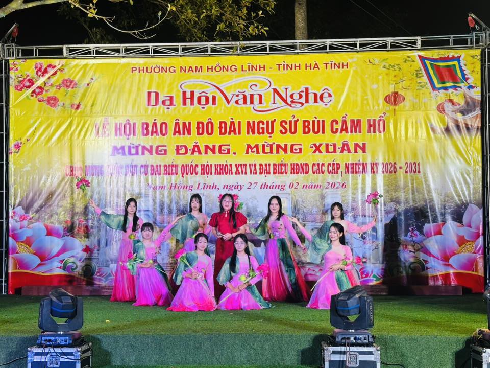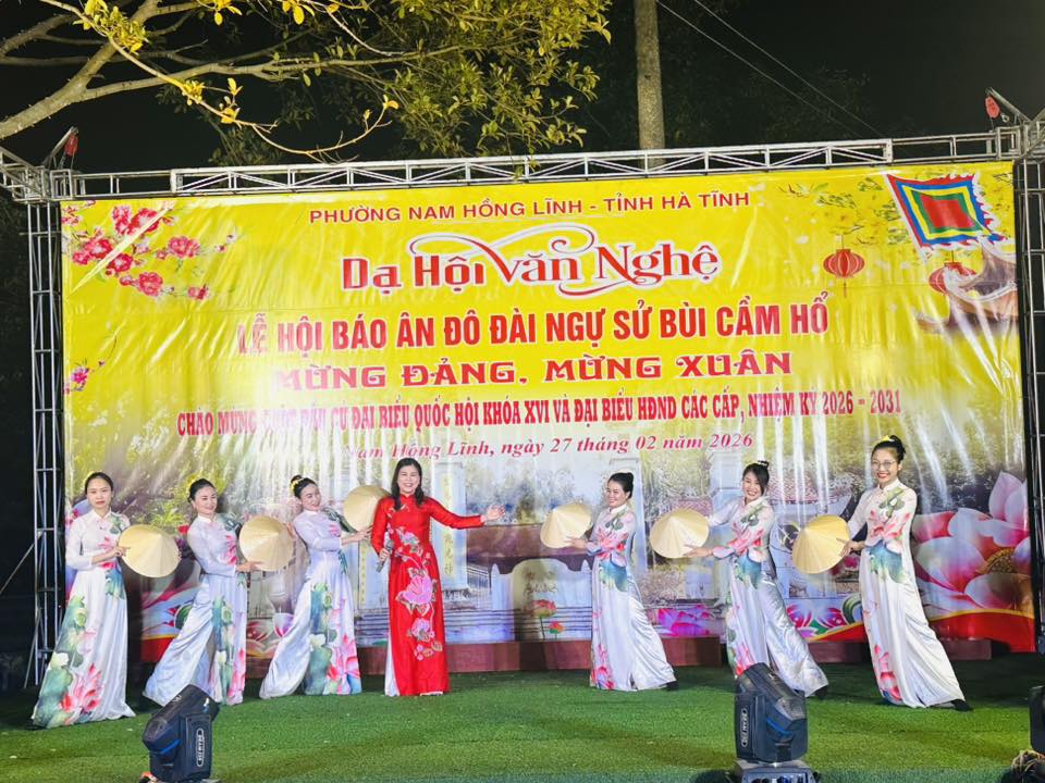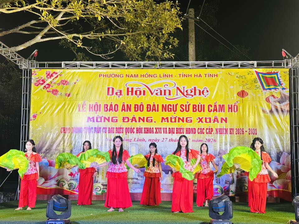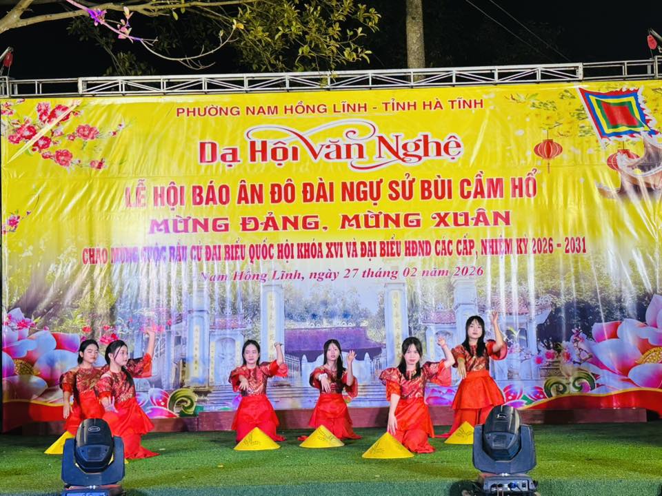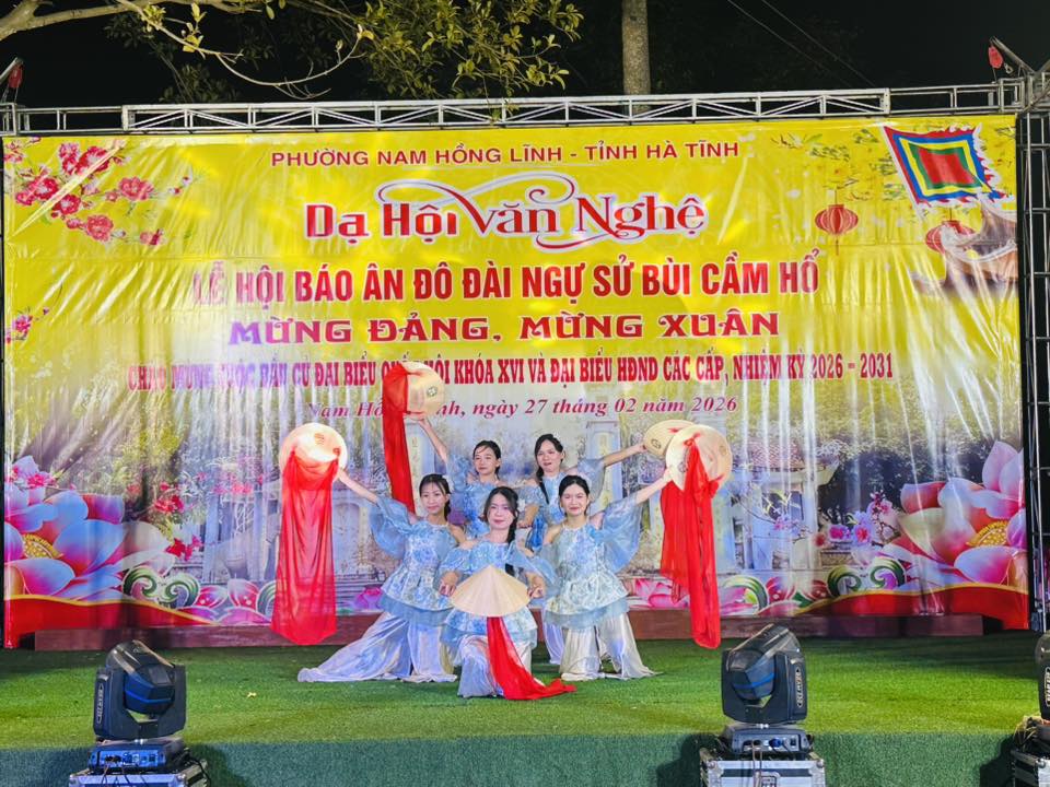 Tối ngày 27/2, trong không khí phấn khởi mừng Đảng, mừng Xuân, chào mừng thành công đại hội đại biểu toàn quốc lần thứ XIV của Đảng và hướng tới cuộc bầu cử đại biểu Quốc hội khóa XVI, đại biểu HĐND các cấp nhiệm kỳ 2026 – 2031, phường Nam Hồng Lĩnh đã tổ chức đêm dạ hội văn nghệ nằm trong chuỗi hoạt động Lễ hội Báo ân Đô đài Ngự sử Bùi Cầm Hổ.