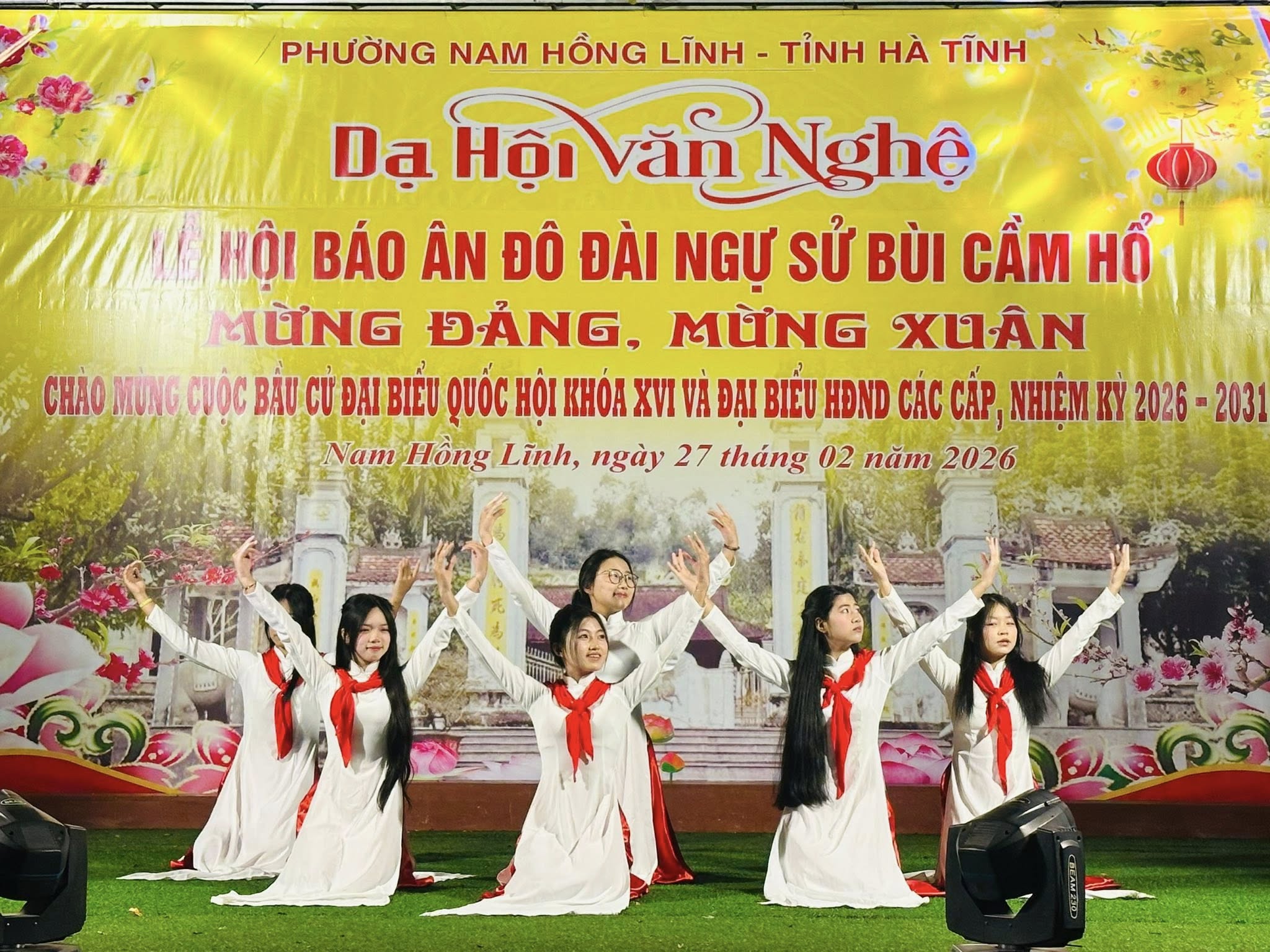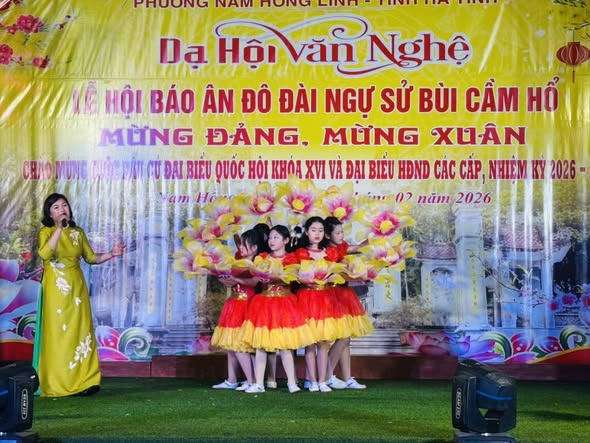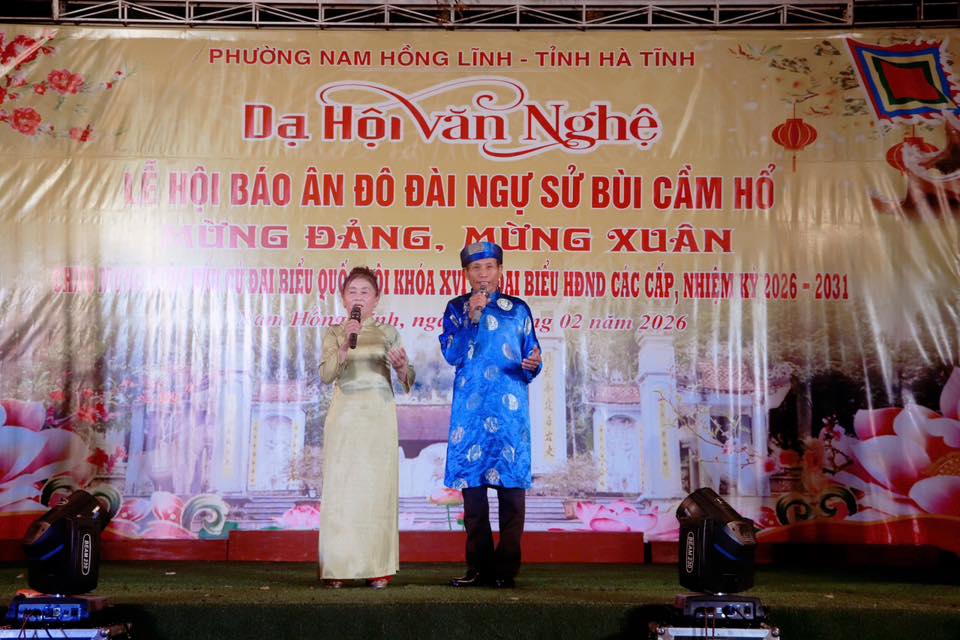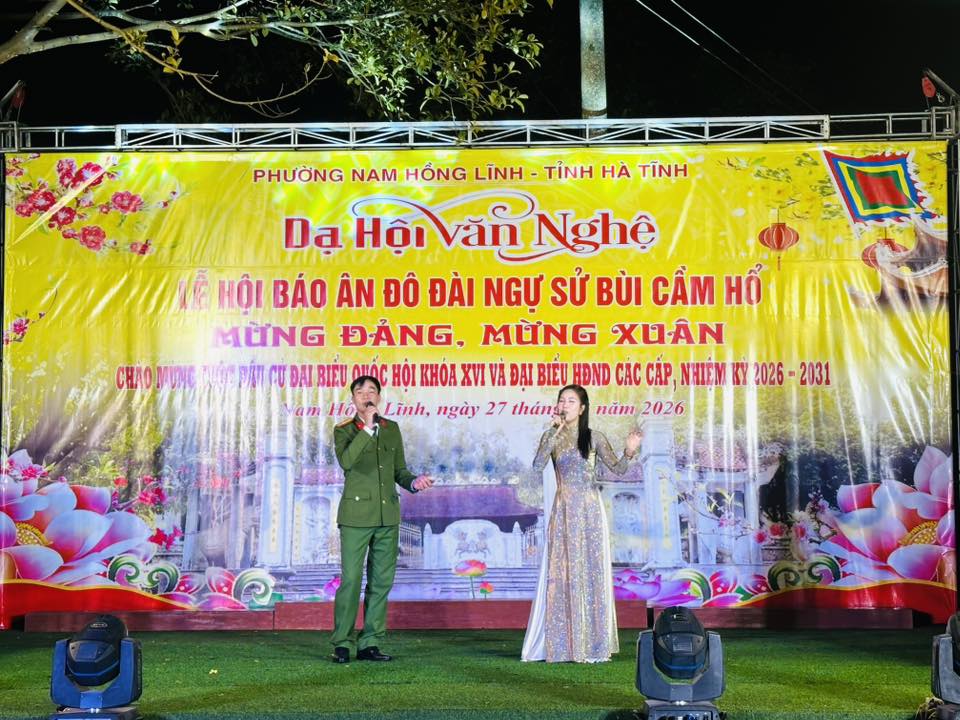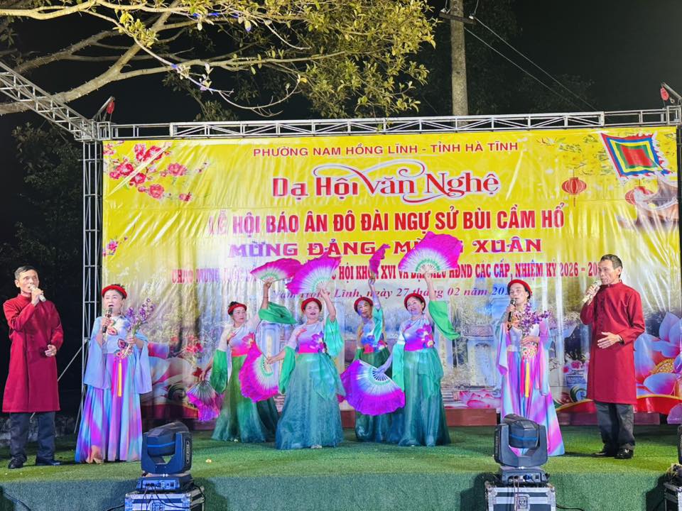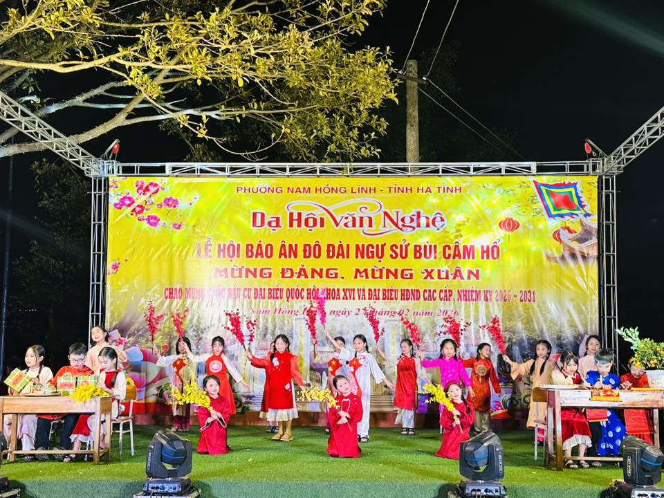 Tối ngày 27/2, trong không khí phấn khởi mừng Đảng, mừng Xuân, chào mừng thành công đại hội đại biểu toàn quốc lần thứ XIV của Đảng và hướng tới cuộc bầu cử đại biểu Quốc hội khóa XVI, đại biểu HĐND các cấp nhiệm kỳ 2026 – 2031, phường Nam Hồng Lĩnh đã tổ chức đêm dạ hội văn nghệ nằm trong chuỗi hoạt động Lễ hội Báo ân Đô đài Ngự sử Bùi Cầm Hổ.