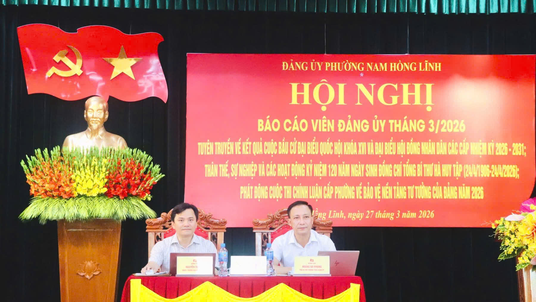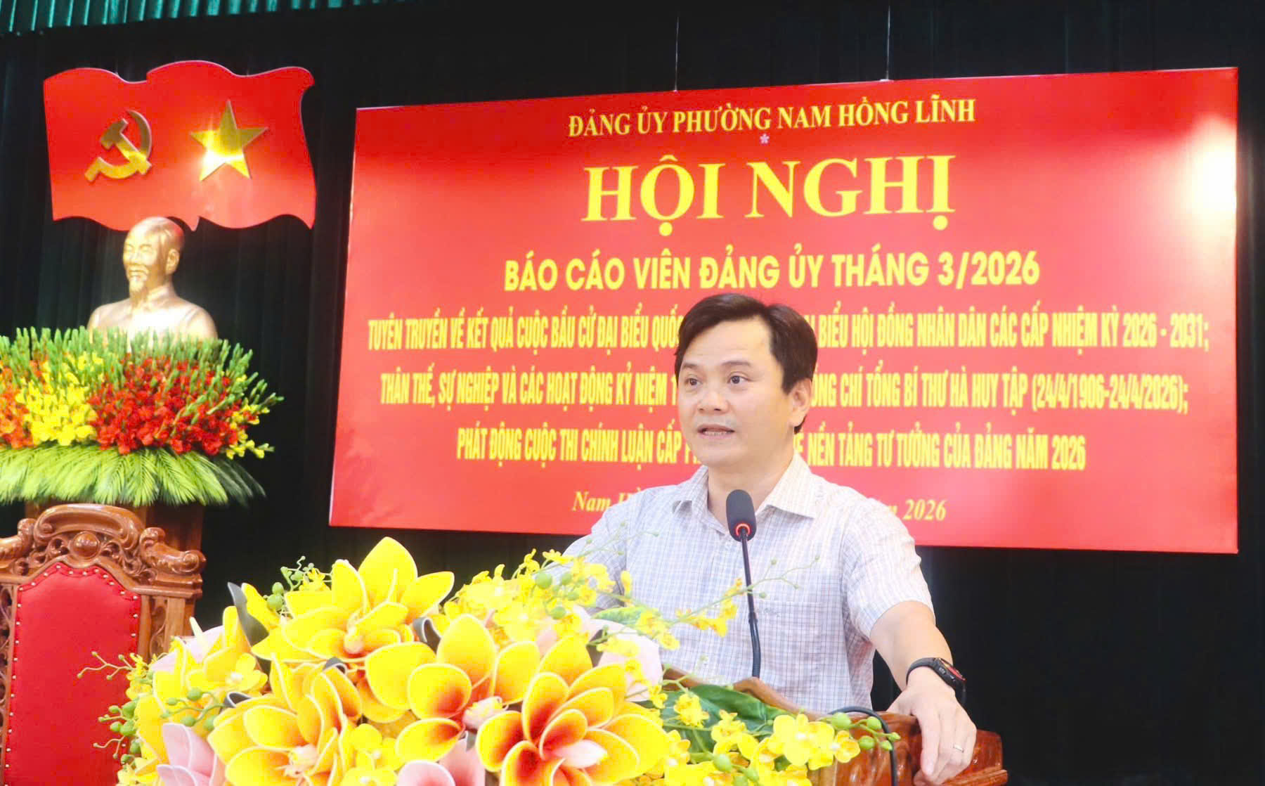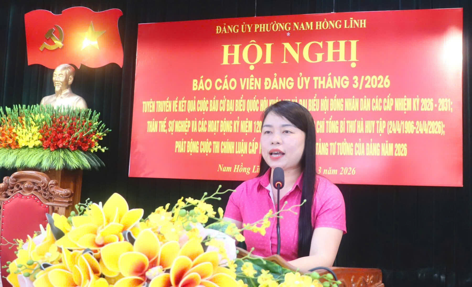 Tại hội nghị, các đại biểu tham dự đã được nghe đồng chí Hoàng Bá Khang, Phó Bí thư Đảng uỷ phường Nam Hồng Lĩnh báo cáo tóm tắt kết quả cuộc Bầu cử đại biểu Quốc hội khóa XVI và đại biểu HĐND các cấp nhiệm kỳ 2026 - 2031 (Tỉnh và phường)