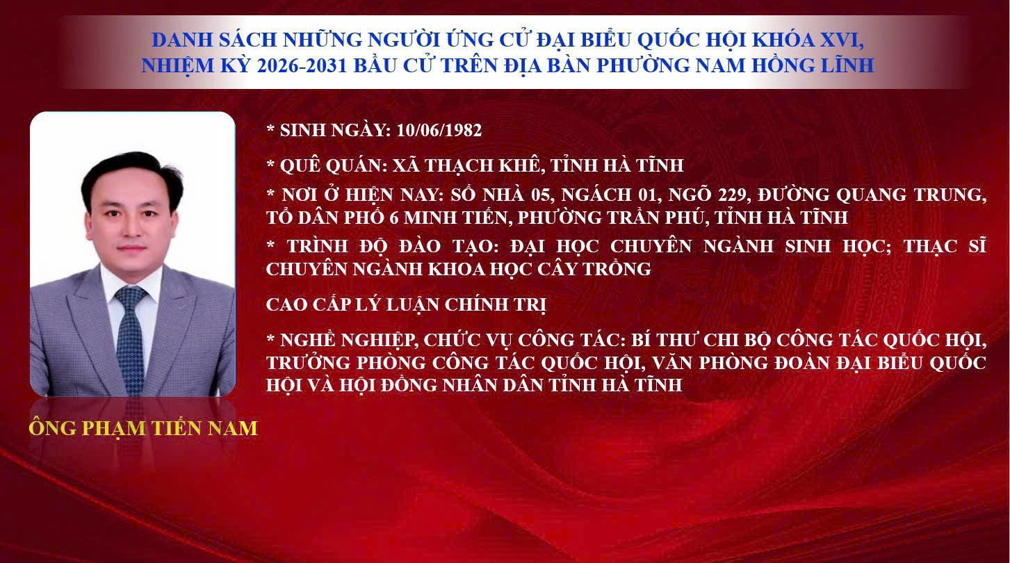 - Quê quán: xã Nam Ninh, tỉnh Ninh Bình