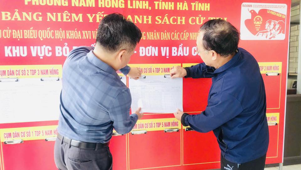 Theo đó, danh sách cử tri được niêm yết công khai tại trụ sở Ủy ban nhân dân phường; 08 khu vực bỏ phiếu trên địa bàn phường; 25 nhà văn hóa các tổ dân phố và tại các cơ quan, đơn vị có cử tri đăng ký bỏ phiếu tại phường Nam Hồng Lĩnh.