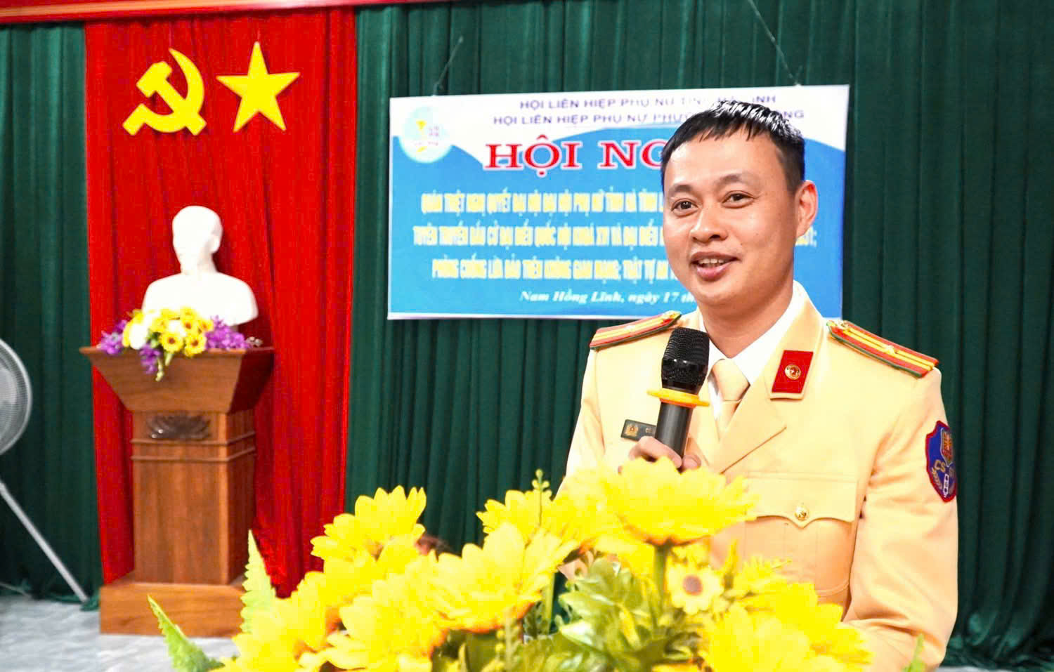 Tham dự có Trưởng Phòng Văn hóa - Xã hôi UBND phường; BTV Hội LHPN phường; Thiếu tá Cù Huy Hậu, Tổ trưởng CSGT địa bàn Hồng Lĩnh; Đại diện Công an phường Nam Hồng Lĩnh; Bí thư chi bộ; tổ trưởng TDP; Toàn thể cán bộ, hội viên chi hội phụ nữ.