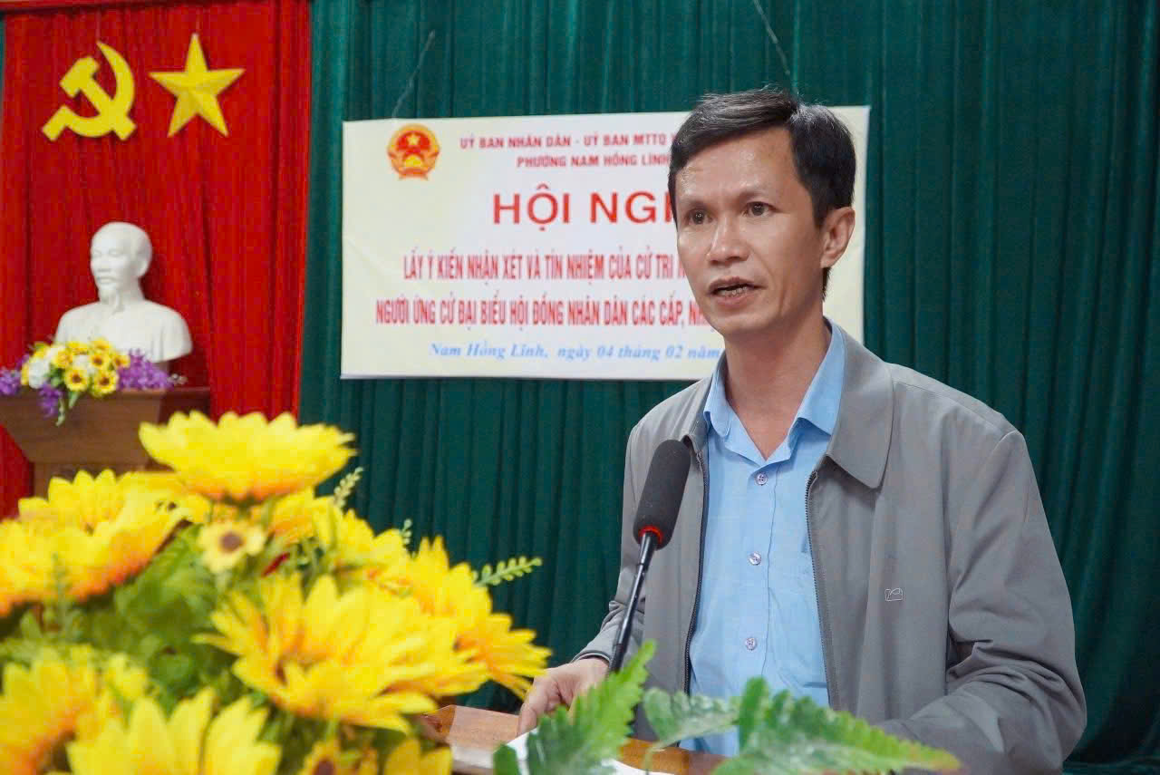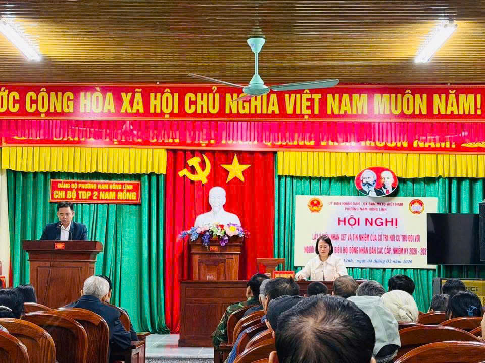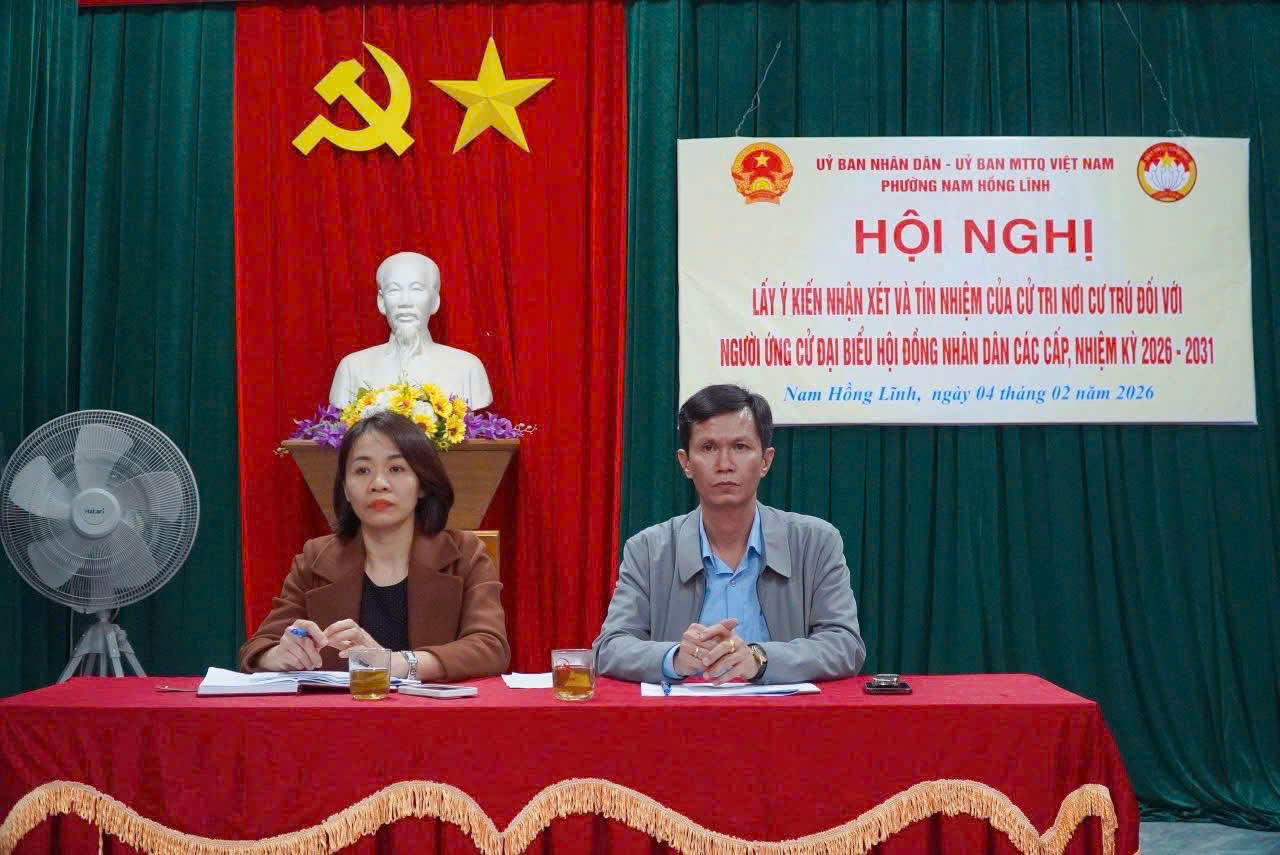 Trong hai ngày 5 và 6 tháng 2/2026, UBND - Ủy ban MTTQ Việt Nam phường Nam Hồng Lĩnh tiếp tục tổ chức hội nghị lấy ý kiến nhận xét và tín nhiệm của cử tri nơi cư trú đối với những người được giới thiệu ứng cử đại biểu HĐND các cấp nhiệm kỳ 2026–2031 tại các đơn vị còn lại. /.