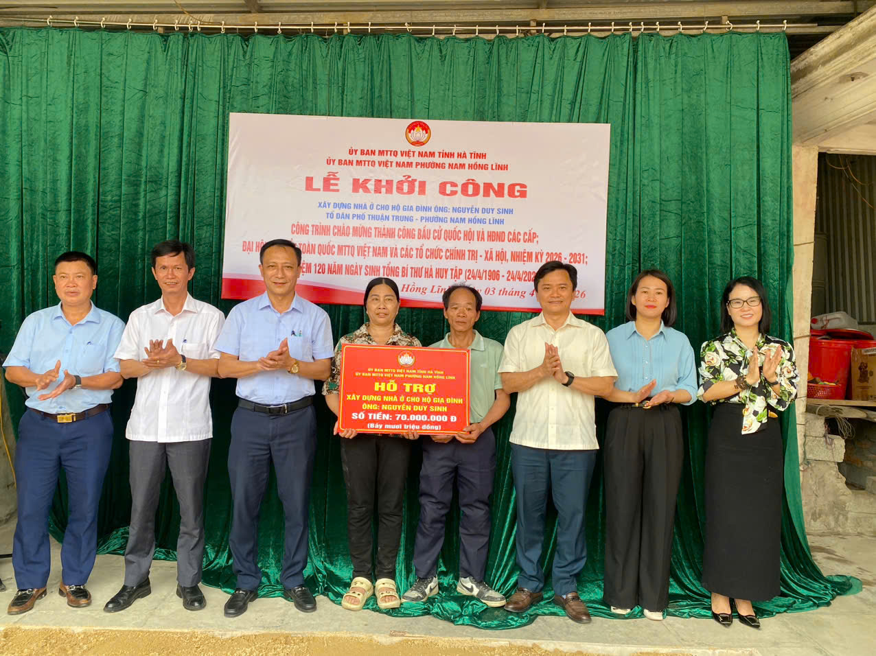 Ban vận động Quỹ “Vì người nghèo” tỉnh Hà Tĩnh hỗ trợ 70 triệu đồng; phần còn lại do gia đình, người thân, tổ dân phố và các đoàn thể chung tay hỗ trợ bằng ngày công, vật liệu.