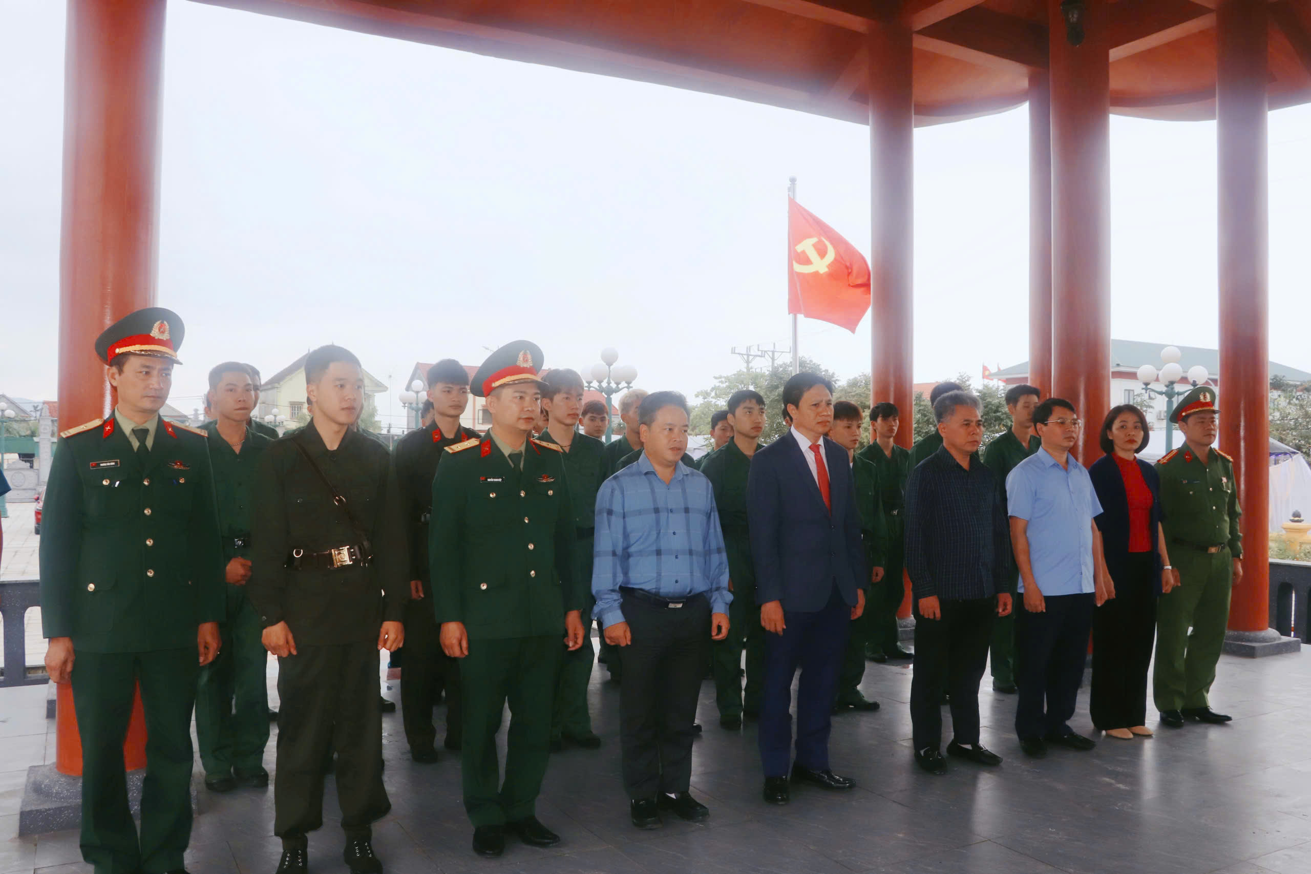 Trong không khí trang nghiêm và thành kính, các đại biểu cùng các thanh niên chuẩn bị lên đường làm nhiệm vụ bảo vệ Tổ quốc đã đặt vòng hoa, dâng hương, dành phút mặc niệm tưởng nhớ, bày tỏ lòng biết ơn sâu sắc đối với các Anh hùng liệt sỹ đã anh dũng hy sinh vì sự nghiệp đấu tranh giải phóng dân tộc, bảo vệ Tổ quốc.