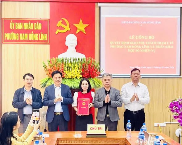 Tại hội nghị, lãnh đạo Phòng Văn hóa - Xã hội đã công bố Quyết định số 56/QĐ-UBND của UBND phường Nam Hồng Lĩnh về việc giao phụ trách, điều hành Trạm Y tế phường Nam Hồng Lĩnh đối với bà Nguyễn Thị Trang, viên chức Trạm Y tế phường (nguyên Trưởng khoa Y tế công cộng-dinh dưỡng và an toàn vệ sinh thực phẩm Trung tâm Y tế Hồng Lĩnh); đồng thời trao quyết định giao phụ trách kế toán Trạm đối với bà Vũ Thị Bình, viên chức Trạm Y tế phường.