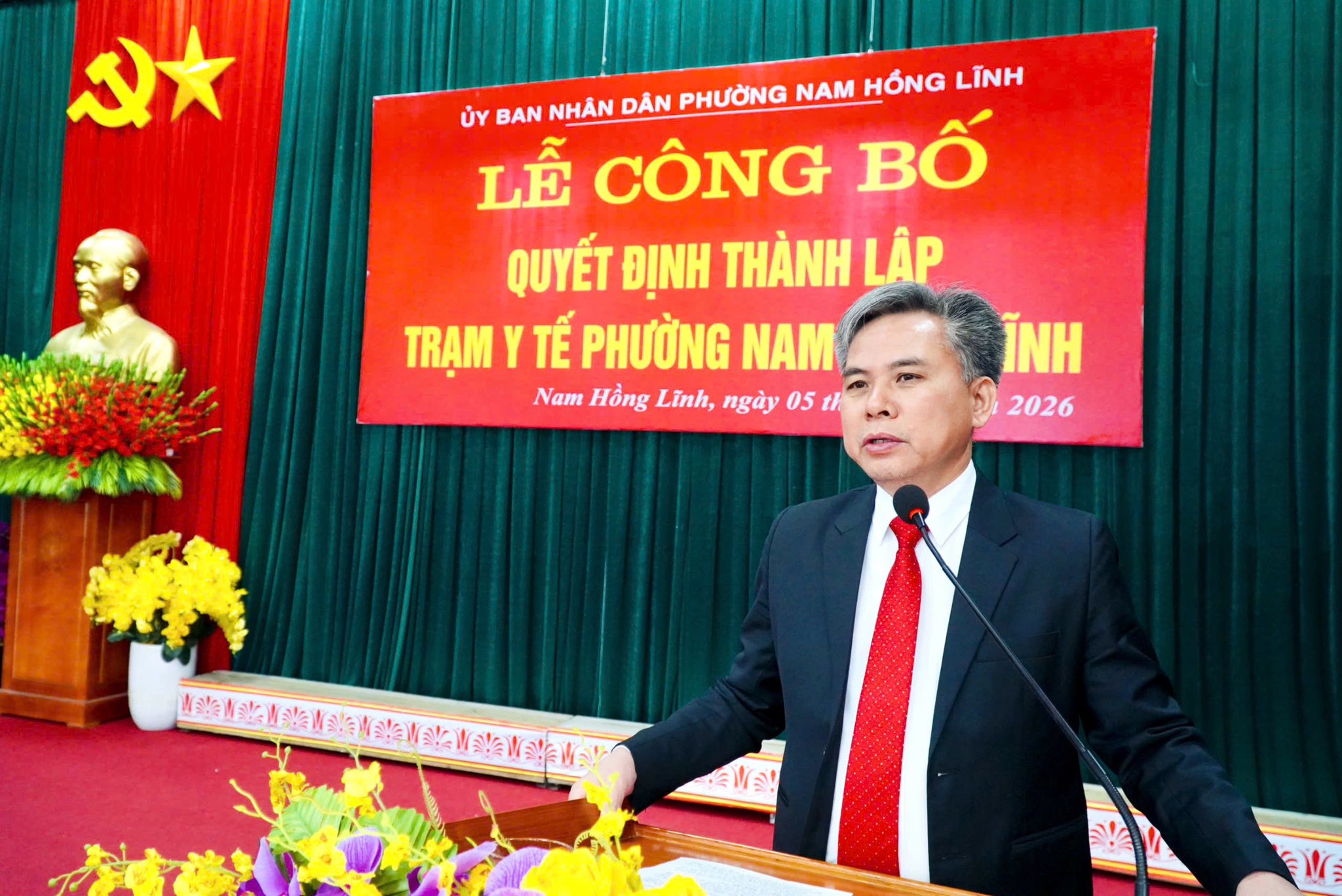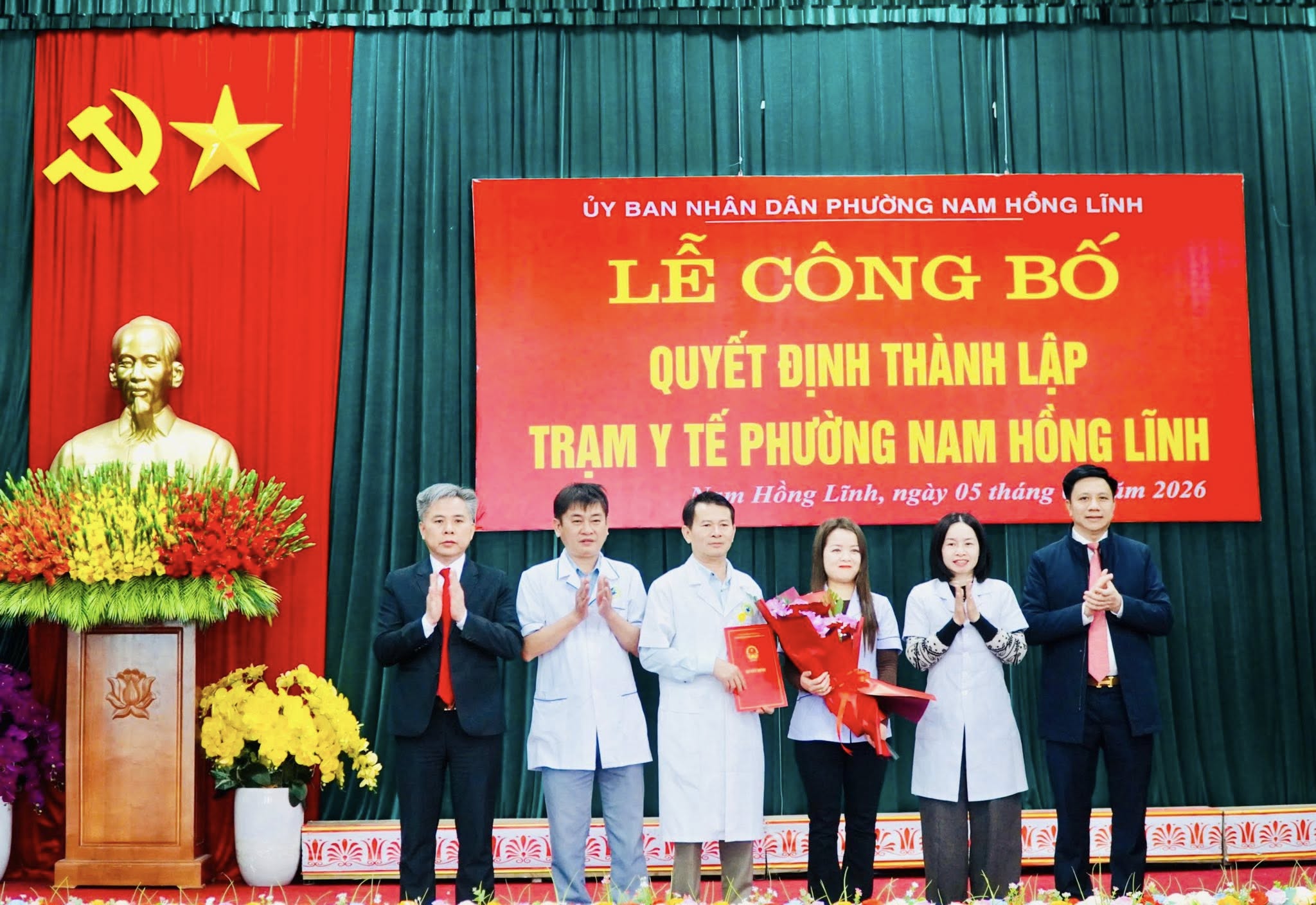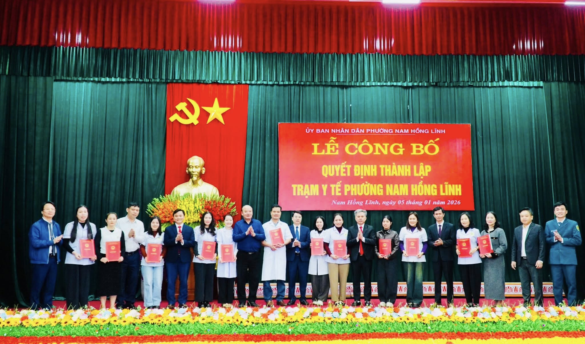 Sáng nay 5/1/2026, Ủy ban nhân dân phường Nam Hồng Lĩnh tổ chức Lễ công bố Quyết định thành lập Trạm Y tế phường Nam Hồng Lĩnh và tiếp nhận, bố viên chức về Trạm Y tế phường Nam Hồng Lĩnh.