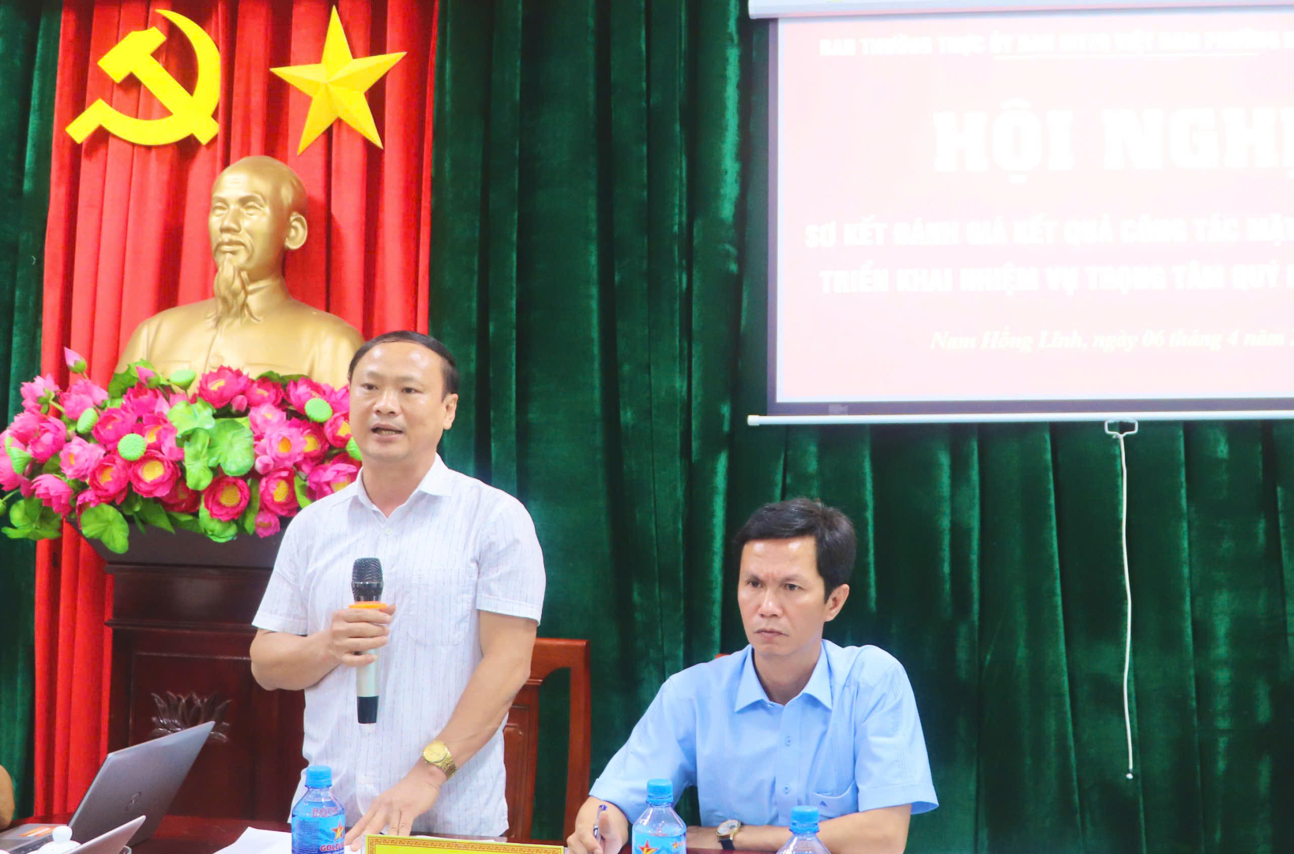 Đồng chí Hoàng Bá Khang, Phó Bí thư Thường trực Đảng ủy ghi nhận, đánh giá cao kết quả đạt được của UBMTTQ trong quý I; đồng thời nêu lên một số nhiệm vụ trọng tâm trong thời gian tới