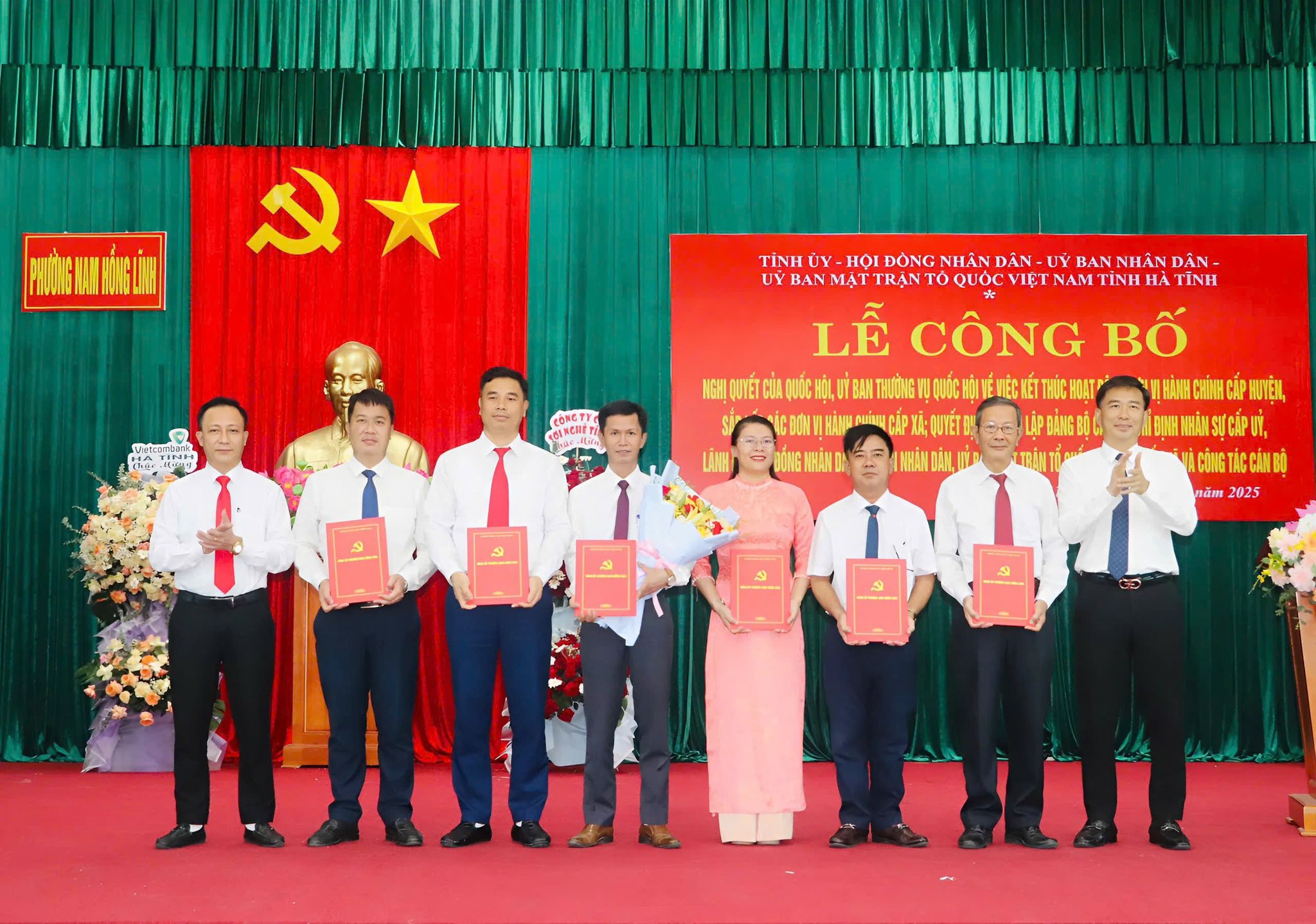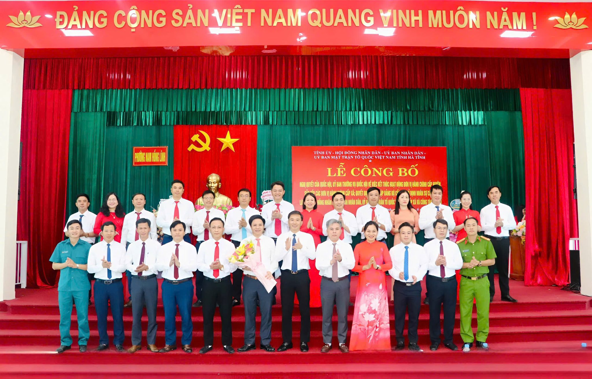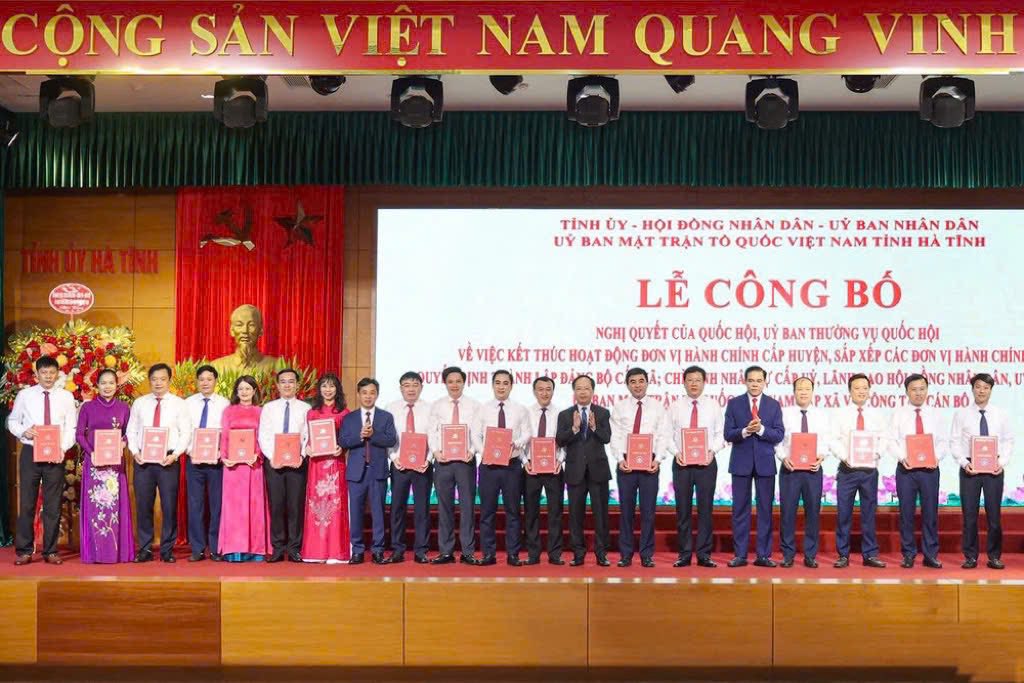 Sáng nay 30/6, tỉnh Hà Tĩnh tổ chức trọng thể Lễ công bố Nghị quyết của Quốc hội, Ủy ban Thường vụ Quốc hội về việc kết thúc hoạt động đơn vị hành chính cấp huyện, sắp xếp các đơn vị hành chính cấp xã; quyết định thành lập đảng bộ cấp xã; chỉ định nhân sự cấp uỷ, lãnh đạo HĐND, UBND, ủy ban MTTQ cấp xã và công tác cán bộ.