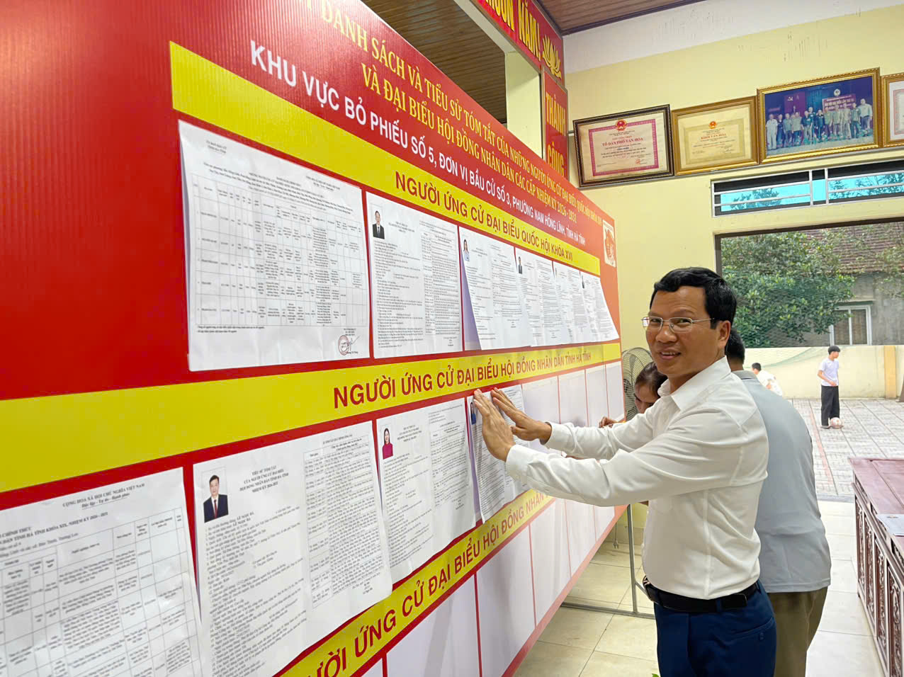 Thực hiện quy định tại Điều 59 Luật bầu cử đại biểu Quốc hội và HĐND (được sửa đổi, bổ sung); 08 Tổ bầu cử đại biểu Quốc hội khoá XVI và đại biểu HĐND các cấp đã hoàn thành việc niêm yết Danh sách và Tiểu sử tóm tắt những người ứng cử đại biểu Quốc hội khoá XVI và đại biểu HĐND các cấp, nhiệm kỳ 2026-2031 tại 08 Khu vực bỏ phiếu trên địa bàn toàn phường.