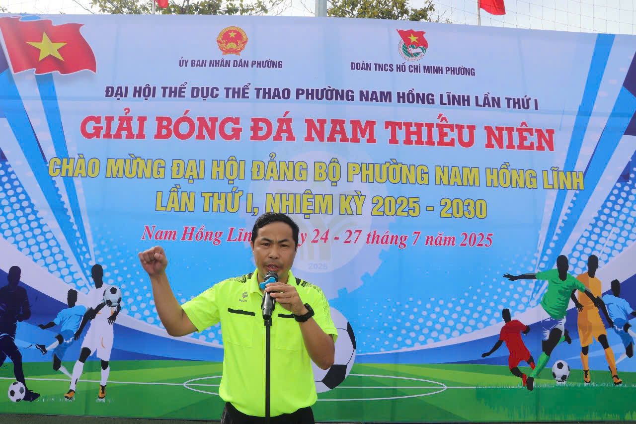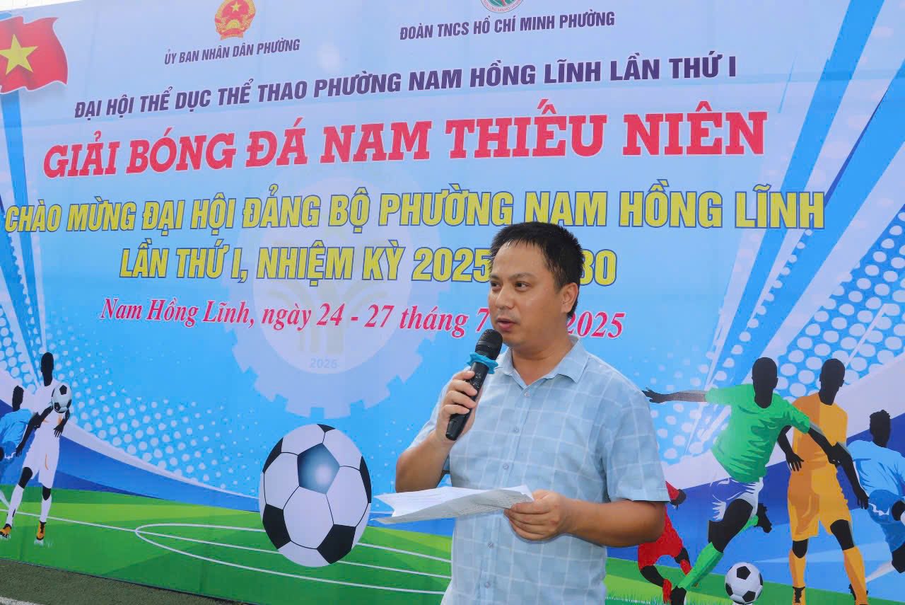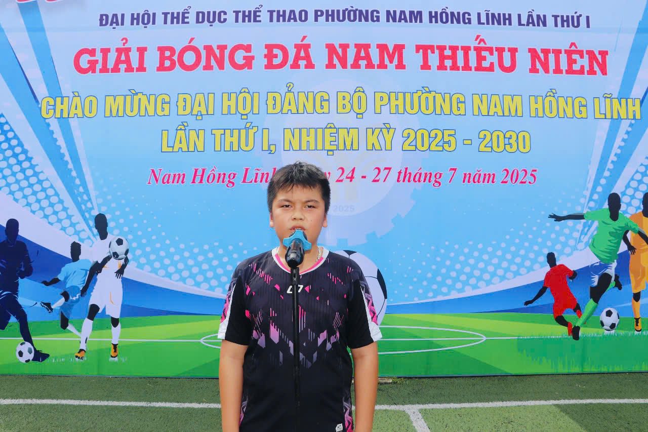 Hòa chung trong không khí thi đua sôi nổi lập thành tích chào mừng kỷ niệm 80 năm ngày truyền thống lực lượng Công an nhân dân, 80 năm Quốc Khánh nước cộng hòa xã hội chủ nghĩa Việt Nam, chào mừng Đại hội đại biểu Đảng bộ phường Nam Hồng Lĩnh lần thứ I, nhiệm kỳ 2025-2030, chiều ngày 24/7, UBND phường Nam Hồng Lĩnh phối hợp với Đoàn Thanh niên Cộng sản Hồ Chí Minh phường tổ chức Lễ khai mạc Giải bóng đá nam Thiếu niên hè 2025.
