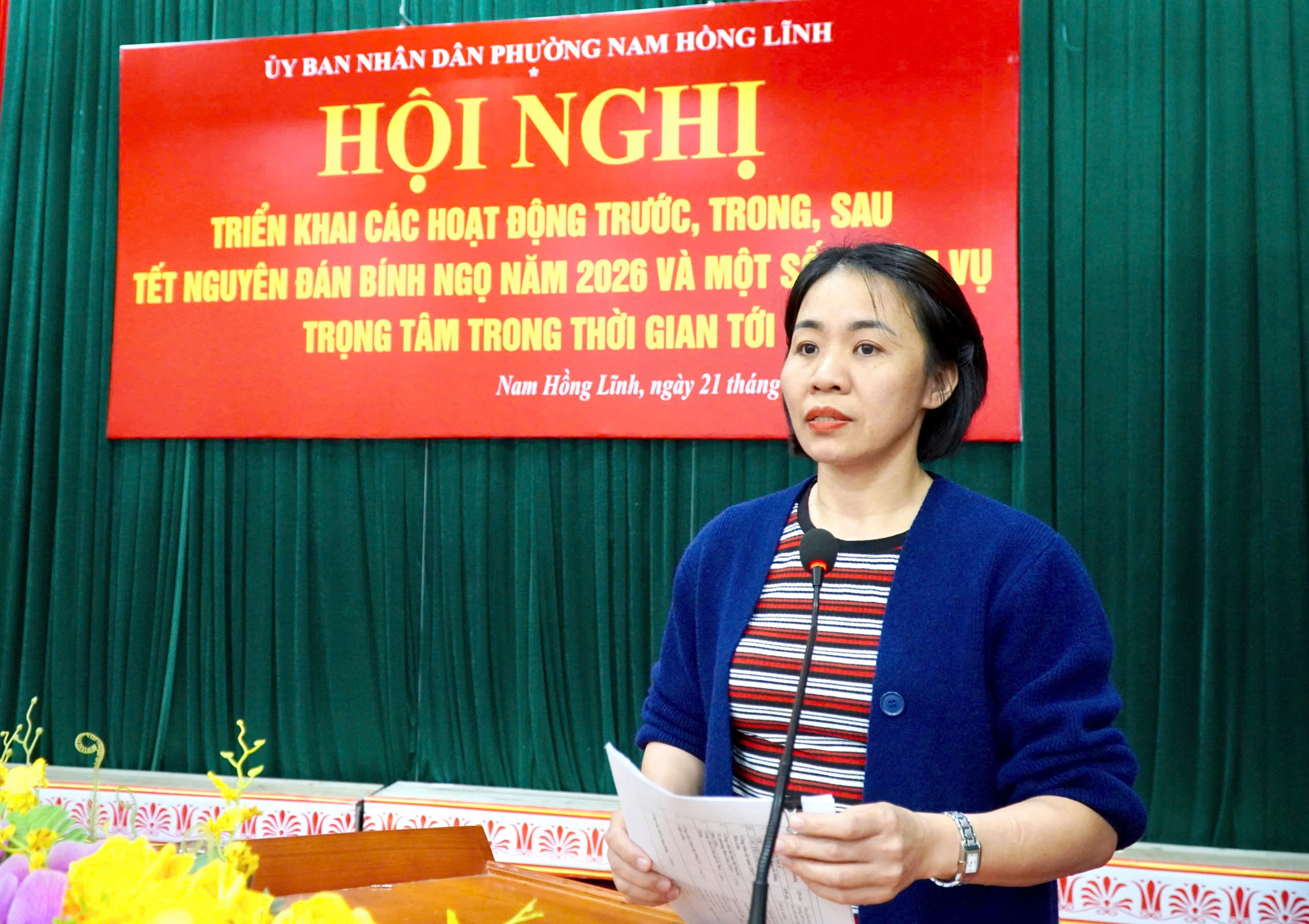Tại hội nghị, các đại biểu đã được quán triệt nội dung Kế hoạch tổ chức các hoạt động mừng Đảng, mừng Xuân Bính Ngọ năm 2026 với nhiều hoạt động trọng tâm trước, trong và sau Tết Nguyên đán, như: công tác tuyên truyền cổ động trực quan; tổ chức thăm hỏi, tặng quà, dâng hương tri ân các anh hùng liệt sĩ; tổ chức Tết trồng cây, ra quân chỉnh trang đô thị nhân dịp Xuân Bính Ngọ năm 2026; Tổ chức Lễ hội báo ân Đô đài Ngự sử Bùi Cầm Hổ; Tổ chức sinh hoạt Hội thơ mừng Đảng - mừng Xuân; tổ chức khai mạc Đại hội TDTT; Giải Kéo co nam, nữ cấp phường và các hoạt động văn hóa, văn nghệ, thể thao tại các TDP.
