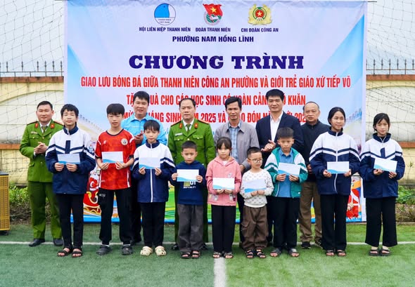Nhân dịp này, BTV Đoàn phường Nam Hồng Lĩnh đã phối hợp trao 10 suất quà cho các em học sinh vùng giáo có hoàn cảnh khó khăn, mỗi suất trị giá 500 ngàn đồng.