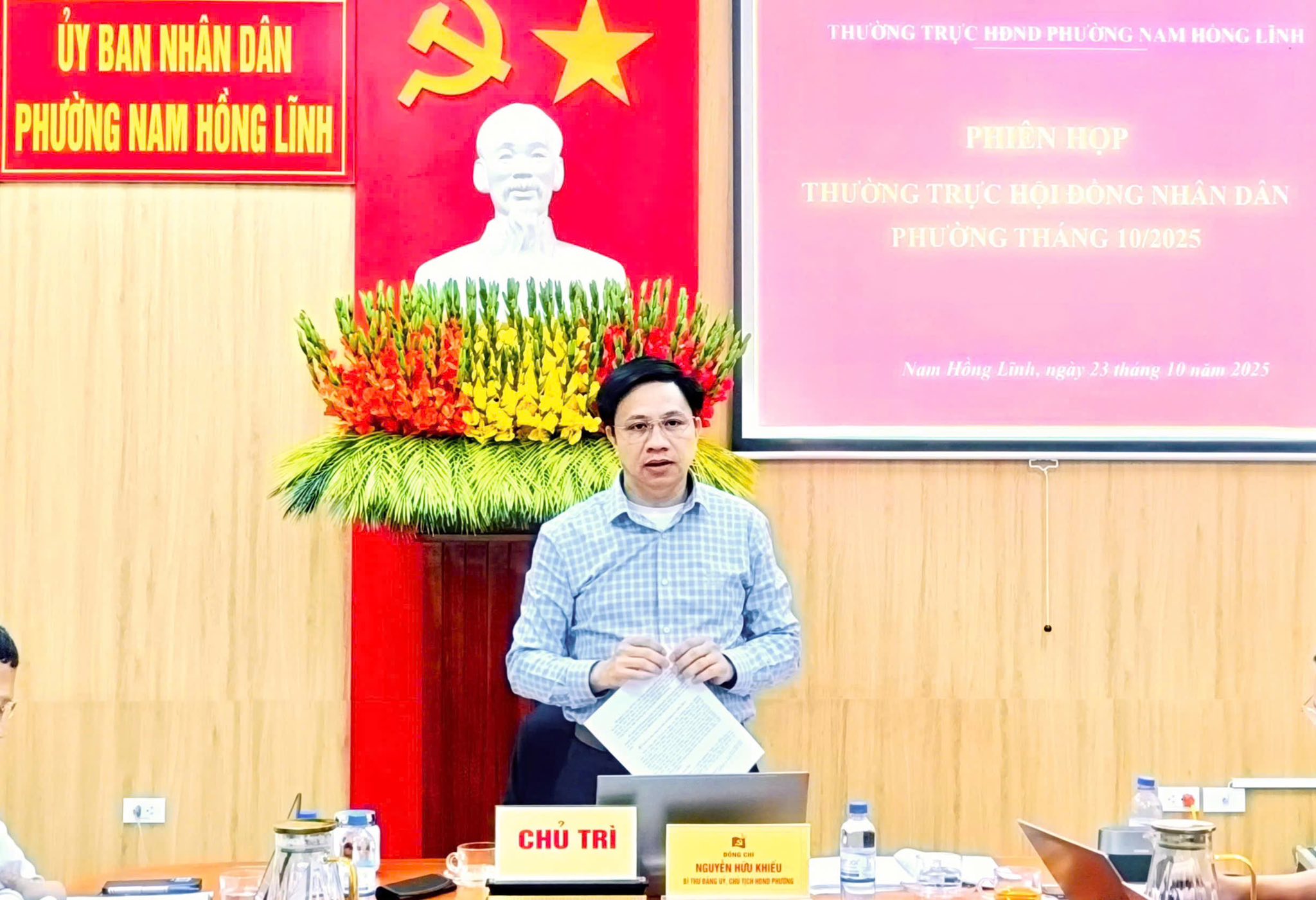Chiều ngày 23/10, Thường trực HĐND phường Nam Hồng Lĩnh tổ chức phiên họp tháng 10 để đánh giá kết quả hoạt động của Hội đồng nhân dân phường Quý III; triển khai các nhiệm vụ, giải pháp trọng tâm Quý IV năm 2025; ký kết Quy chế phối hợp hoạt động giữa Hội đồng nhân dân, Ủy ban nhân dân, Ủy ban MTTQ Việt Nam phường nhiệm kỳ 2021-2026.