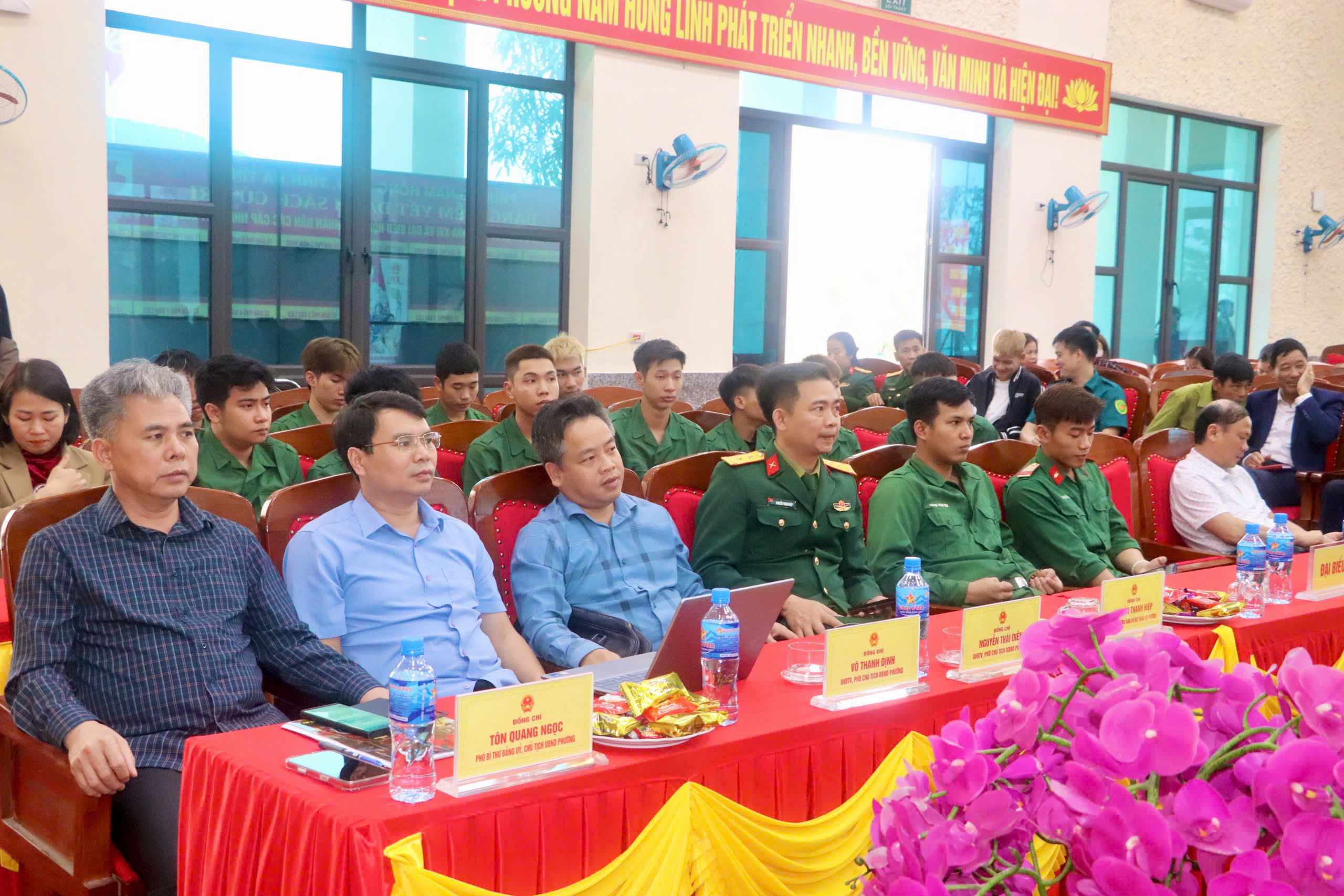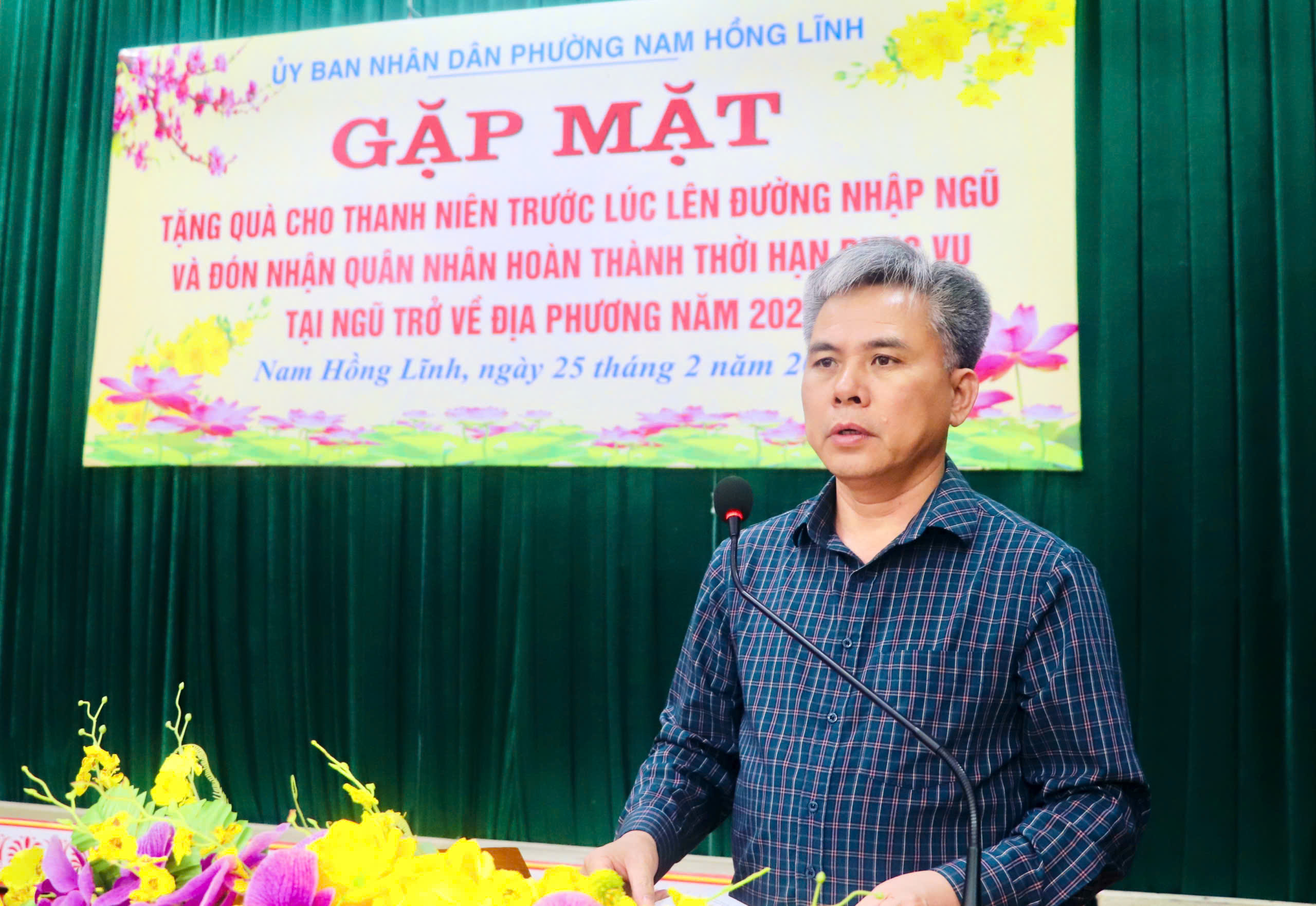 Phát biểu tại chương trình, đồng chí Tôn Quang Ngọc – Phó Bí thư Đảng ủy, Chủ tịch UBND phường Nam Hồng Lĩnh biểu dương tinh thần trách nhiệm, ý chí rèn luyện và những đóng góp của các đồng chí quân nhân trong thời gian phục vụ tại Quân đội Nhân dân Việt Nam. Tin tưởng rằng khi trở về địa phương, các đồng chí sẽ tiếp tục phát huy phẩm chất “Bộ đội Cụ Hồ”, tích cực lao động, tham gia xây dựng quê hương, giữ gìn an ninh trật tự.