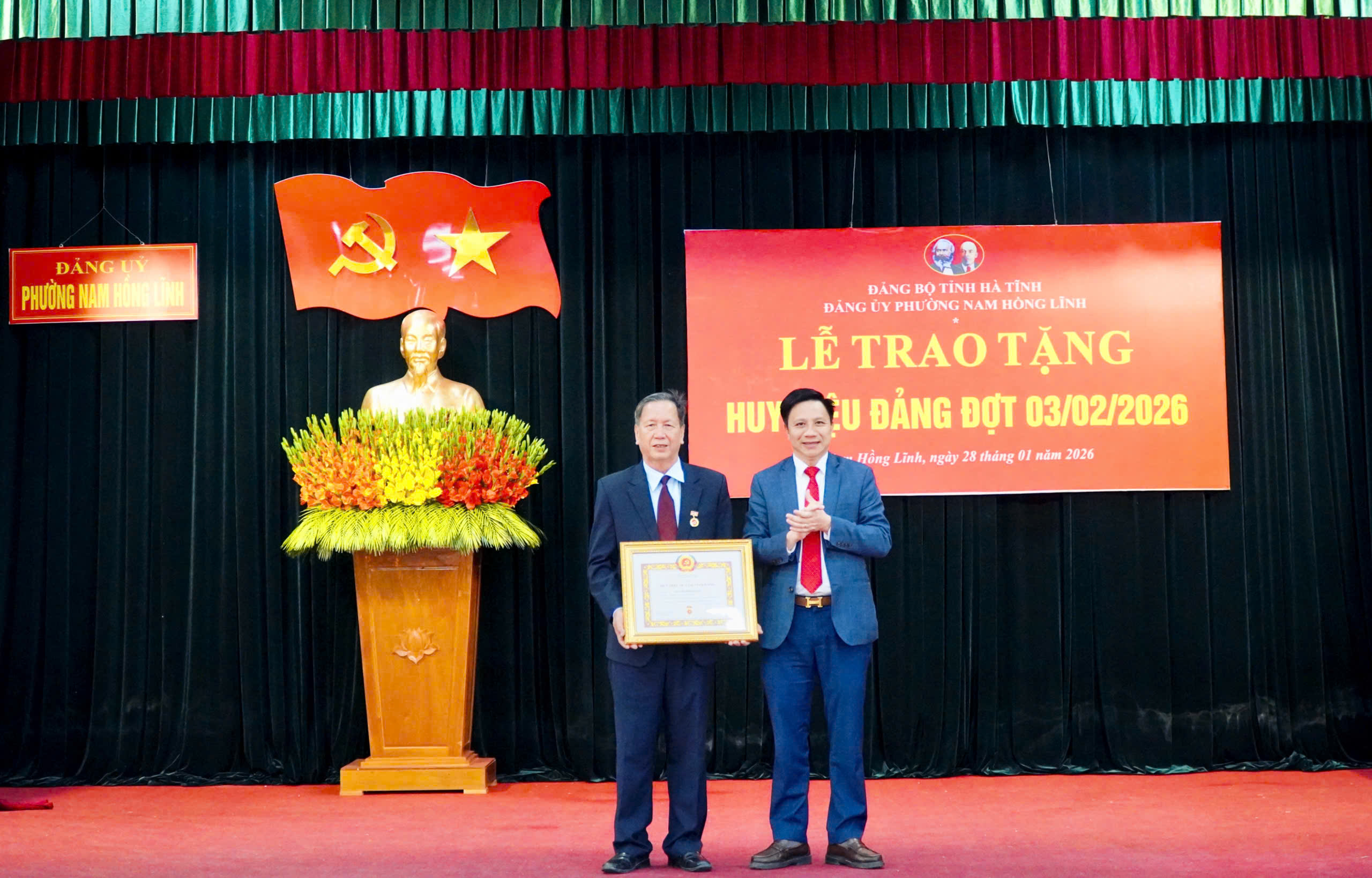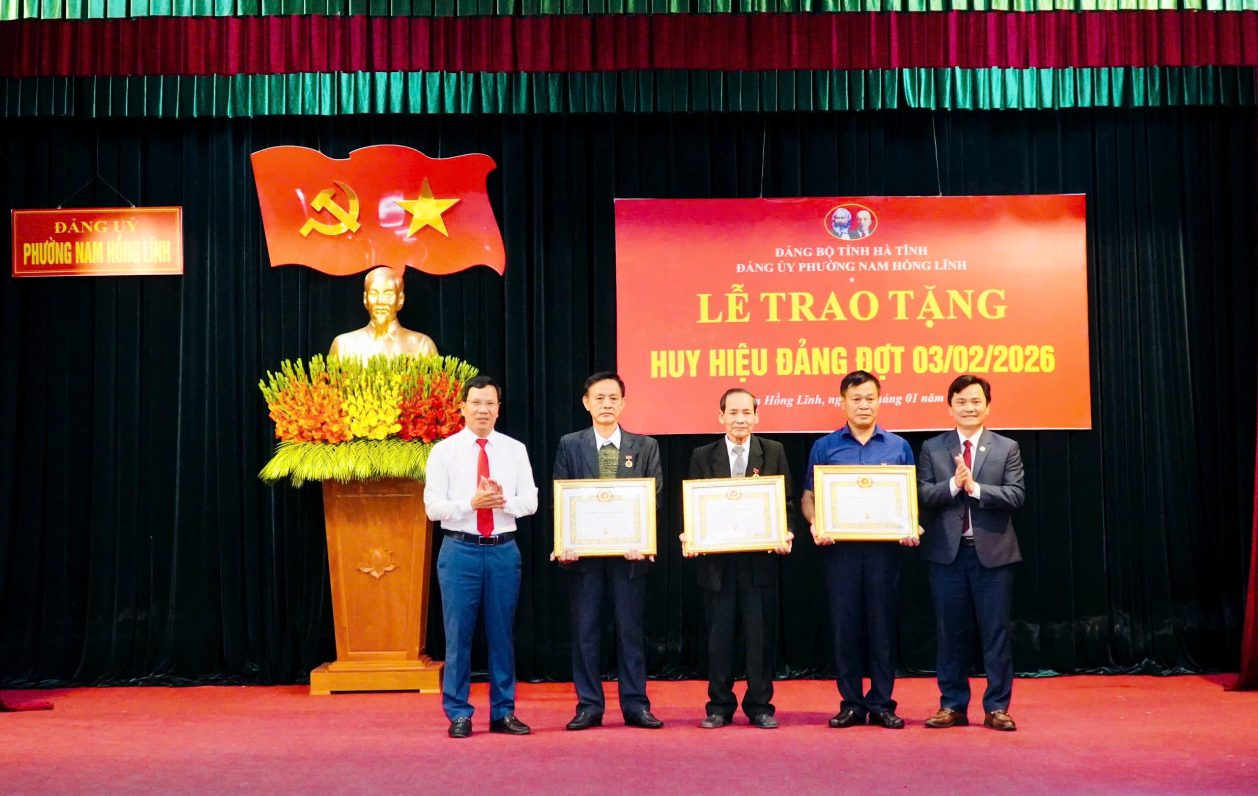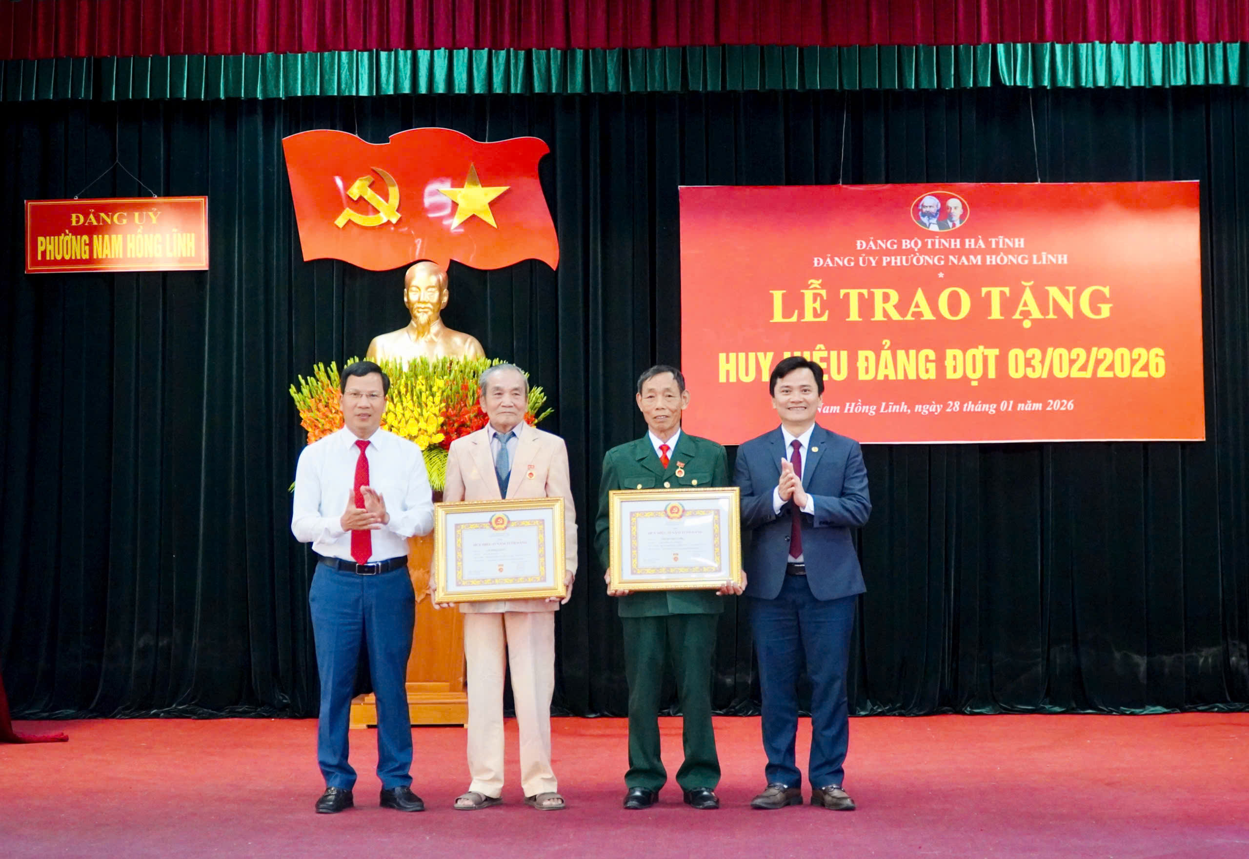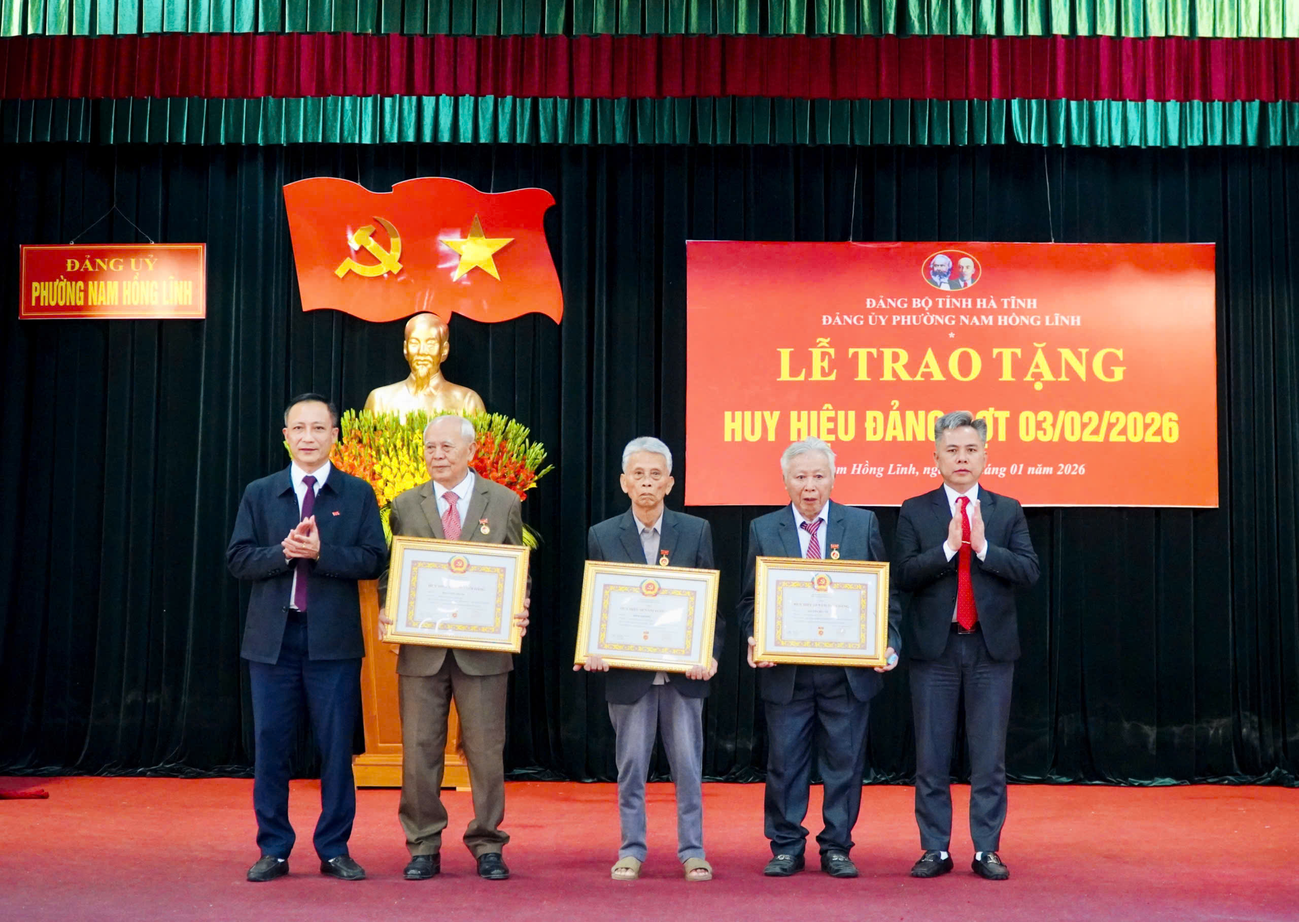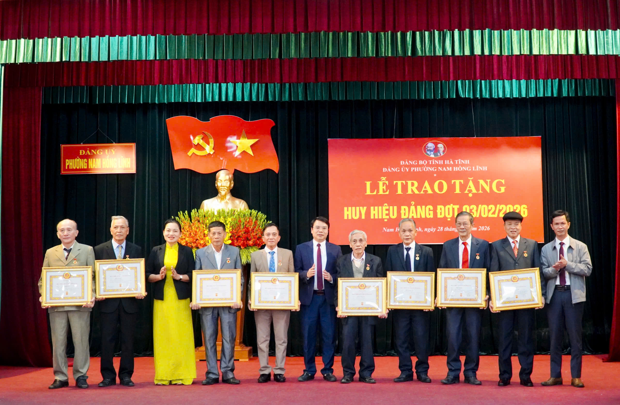 Dịp này, Đảng bộ phường Nam Hồng Lĩnh có 27 đảng viên được vinh dự đón nhận Huy hiệu của Đảng. Trong đó, 1 đồng chí nhận Huy hiệu 65 tuổi Đảng; 3 đồng chí nhận Huy hiệu 60 năm tuổi Đảng; 2 đồng chí nhận Huy hiệu 50 năm tuổi Đảng; 2 đồng chí nhận Huy hiệu 55 năm tuổi Đảng; 10 đồng chí nhận Huy hiệu 45 năm tuổi Đảng; 5 đồng chí nhận Huy hiệu 40 năm tuổi Đảng và 4 đồng chí nhận huy hiệu 30 năm tuổi đảng.