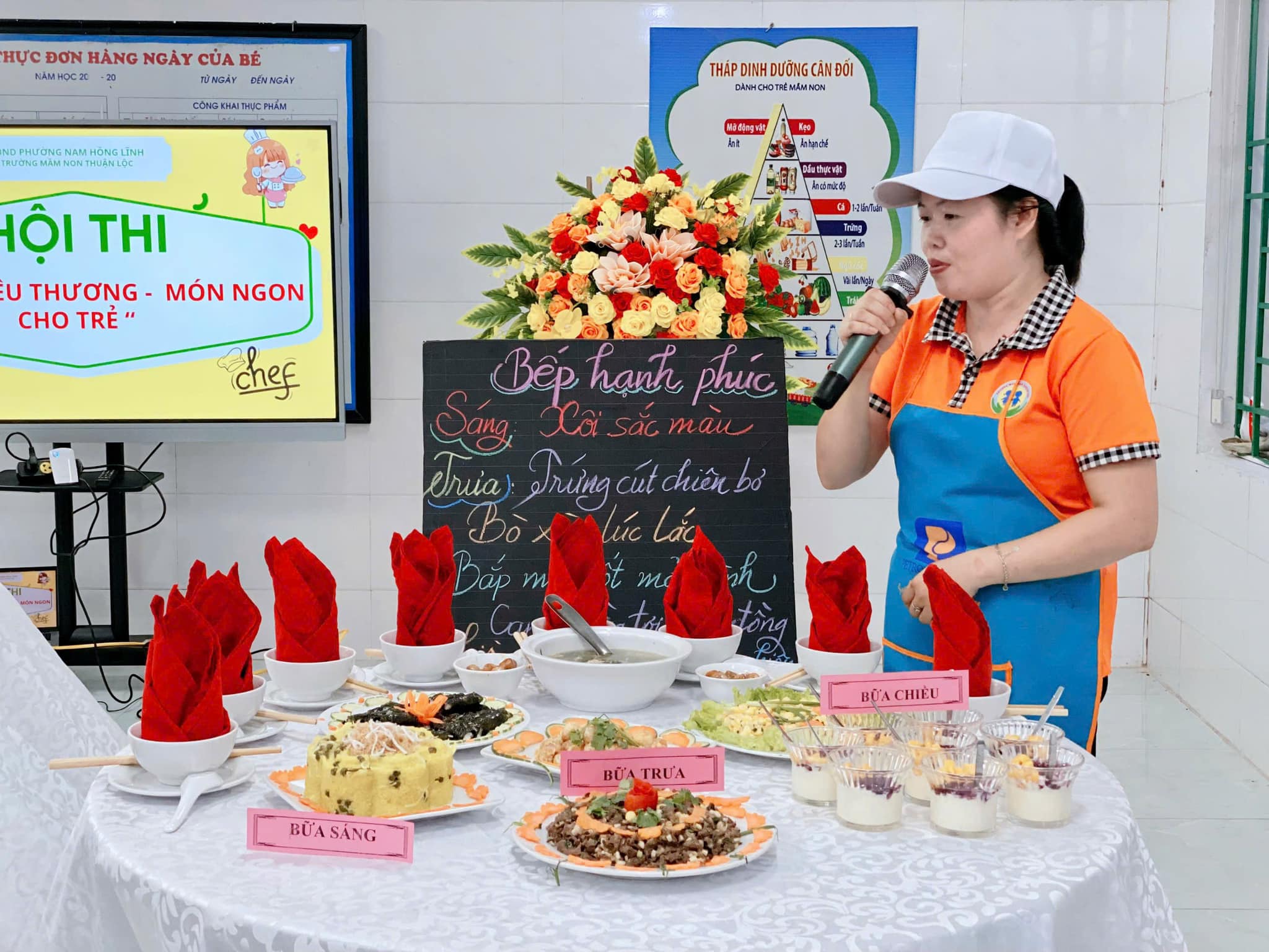 Trong không khí thi đua sôi nổi của năm học mới, trong ngày 10/10/2025, Trường mầm non Thuận Lộc đã tổ chức Hội thi “Cô nuôi dưỡng - Bữa ăn dinh dưỡng cho bé yêu” - một hoạt động ý nghĩa nhằm tôn vinh sự tận tâm, khéo léo và tình yêu thương của các cô nhân viên nuôi dưỡng dành cho các bé qua từng món ăn ngon, từng khẩu phần ăn đầy đủ dinh dưỡng.