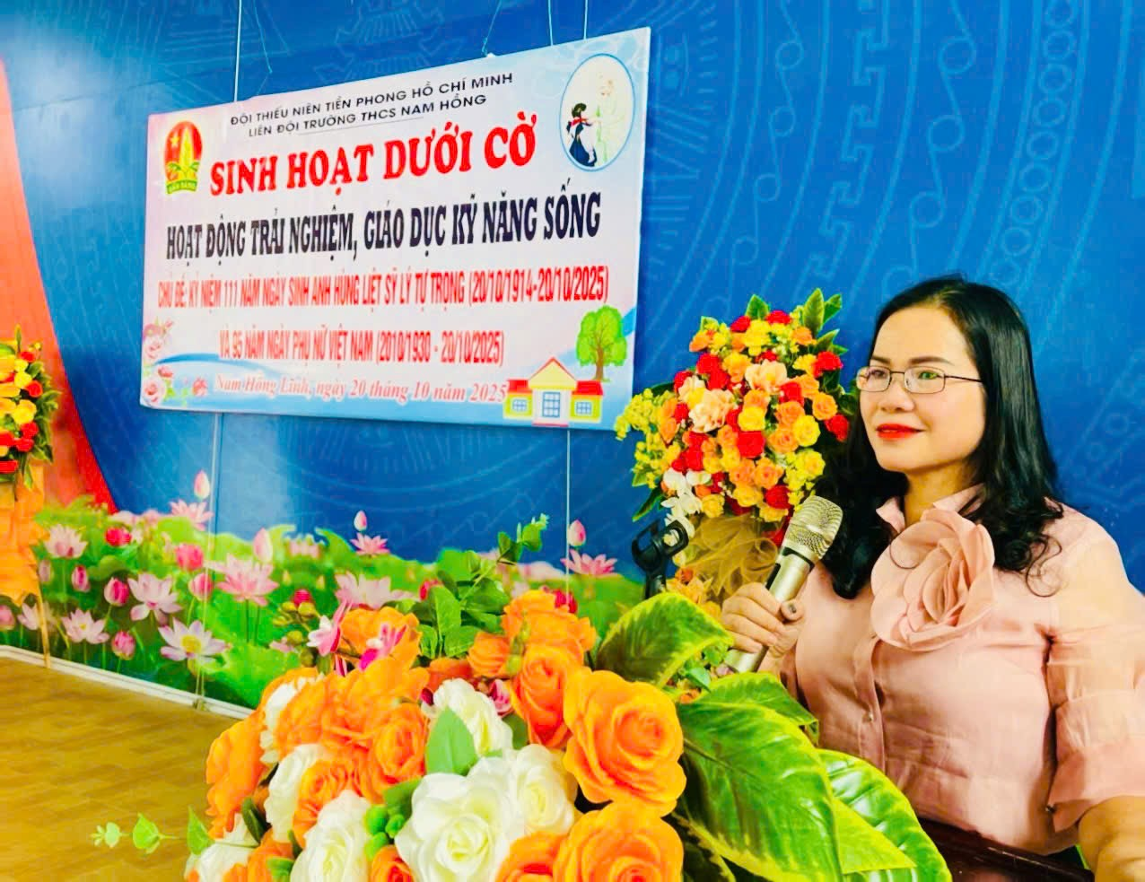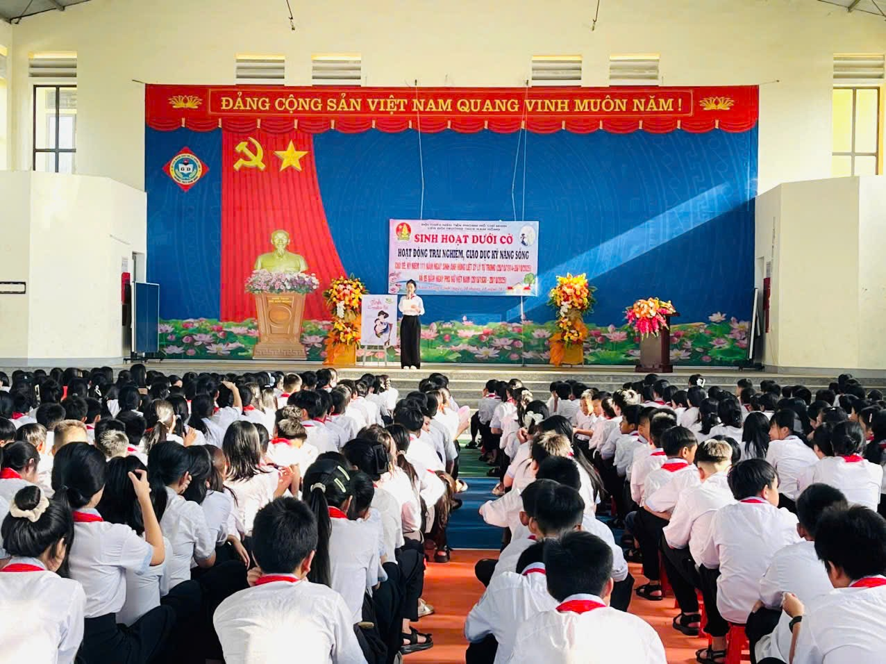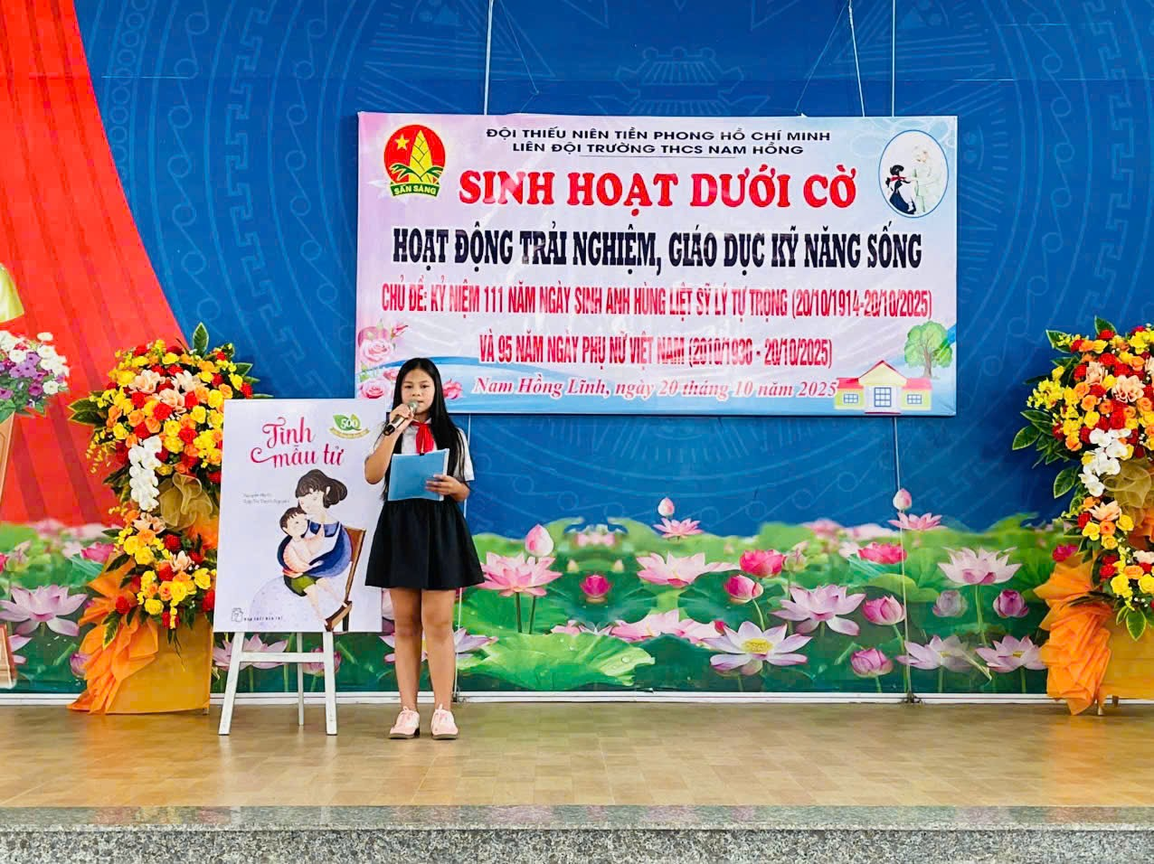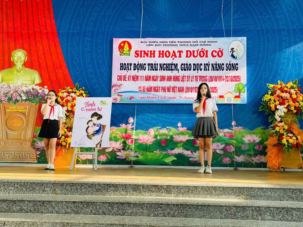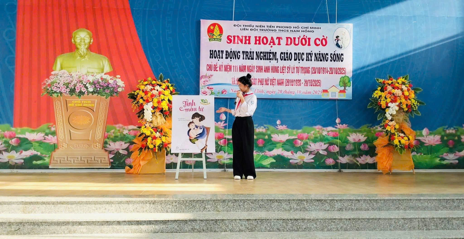 Sáng ngày 20 tháng 10 năm 2025, Liên đội Trường THCS Nam Hồng tổ chức buổi sinh hoạt dưới cờ với chủ đề: “Kỷ niệm 111 năm ngày sinh Anh hùng liệt sĩ Lý Tự Trọng (20/10/1914 - 20/10/2025) và 95 năm Ngày thành lập Hội Liên hiệp Phụ nữ Việt Nam (20/10/1930 - 20/10/2025)” Buổi sinh hoạt là một hoạt động trải nghiệm - giáo dục kỹ năng sống mang ý nghĩa sâu sắc, giúp các em đội viên, học sinh ôn lại truyền thống vẻ vang của dân tộc, noi gương những tấm gương sáng ngời về lòng yêu nước và đức hy sinh.