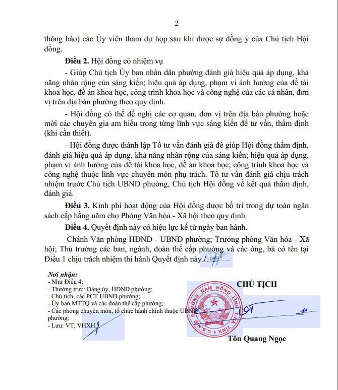 UBND phường thành lập Hội đồng Đánh giá hiệu quả áp dụng, phạm vi ảnh hưởng của sáng kiến, đề tài nghiên cứu khoa học trên địa bàn phường