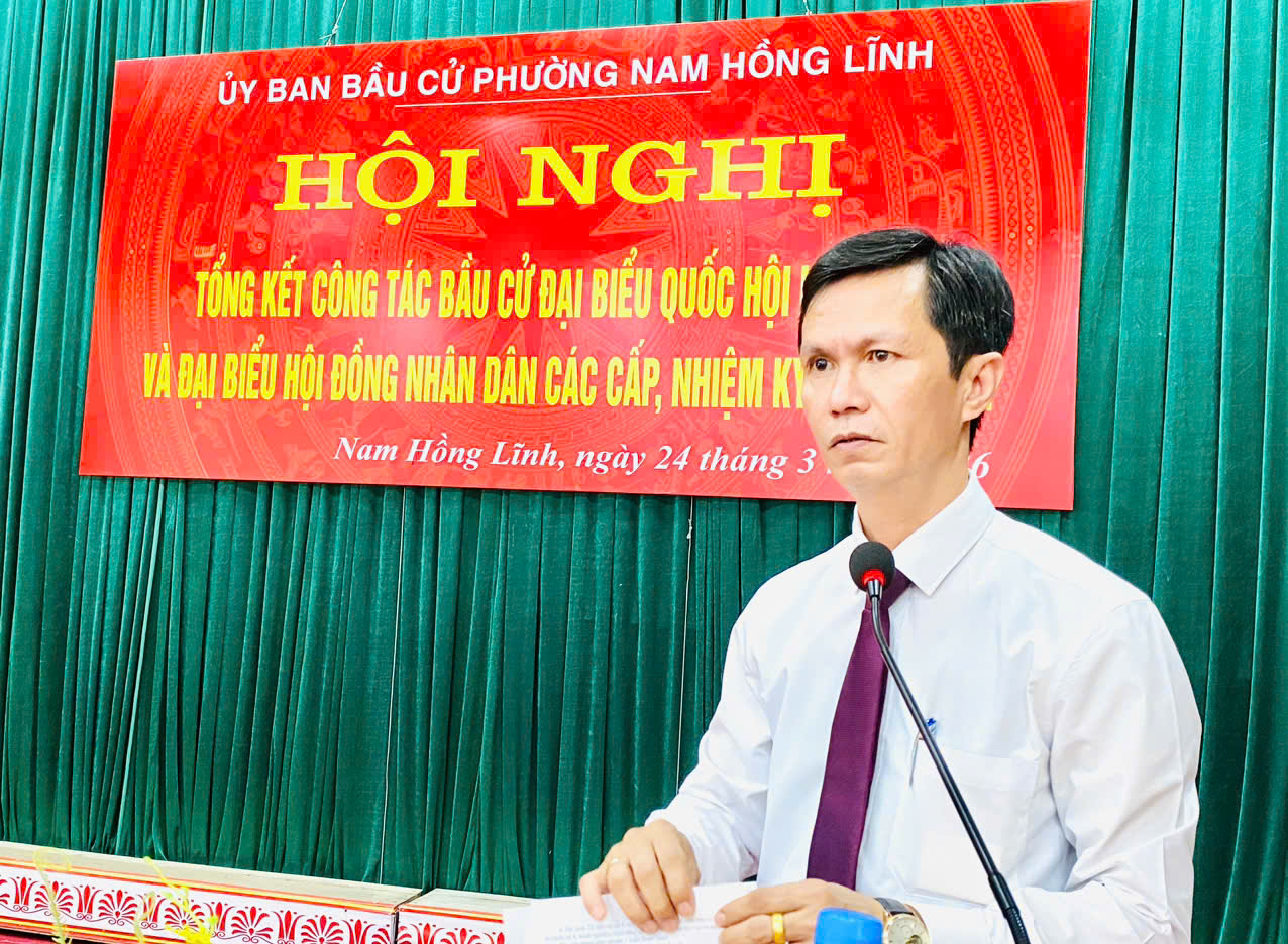 Phát biểu kết luận hội nghị, đồng chí Nguyễn Hữu Khiếu, Ủy viên BCH Đảng bộ tỉnh, Bí thư Đảng ủy, Chủ tịch HĐND phường, Trưởng ban Ban chỉ đạo, Chủ tịch Ủy bầu cử phường khẳng định: cuộc bầu cử đại biểu Quốc hội khóa XVI và HĐND các cấp nhiệm kỳ 2026–2031 tại phường Nam Hồng Lĩnh đã thành công, bảo đảm dân chủ, đúng pháp luật, an toàn, tiết kiệm và thực sự là ngày hội của toàn dân. Thành công này góp phần củng cố niềm tin của Nhân dân, tạo tiền đề xây dựng hệ thống chính trị vững mạnh và thúc đẩy phát triển kinh tế - xã hội địa phương.